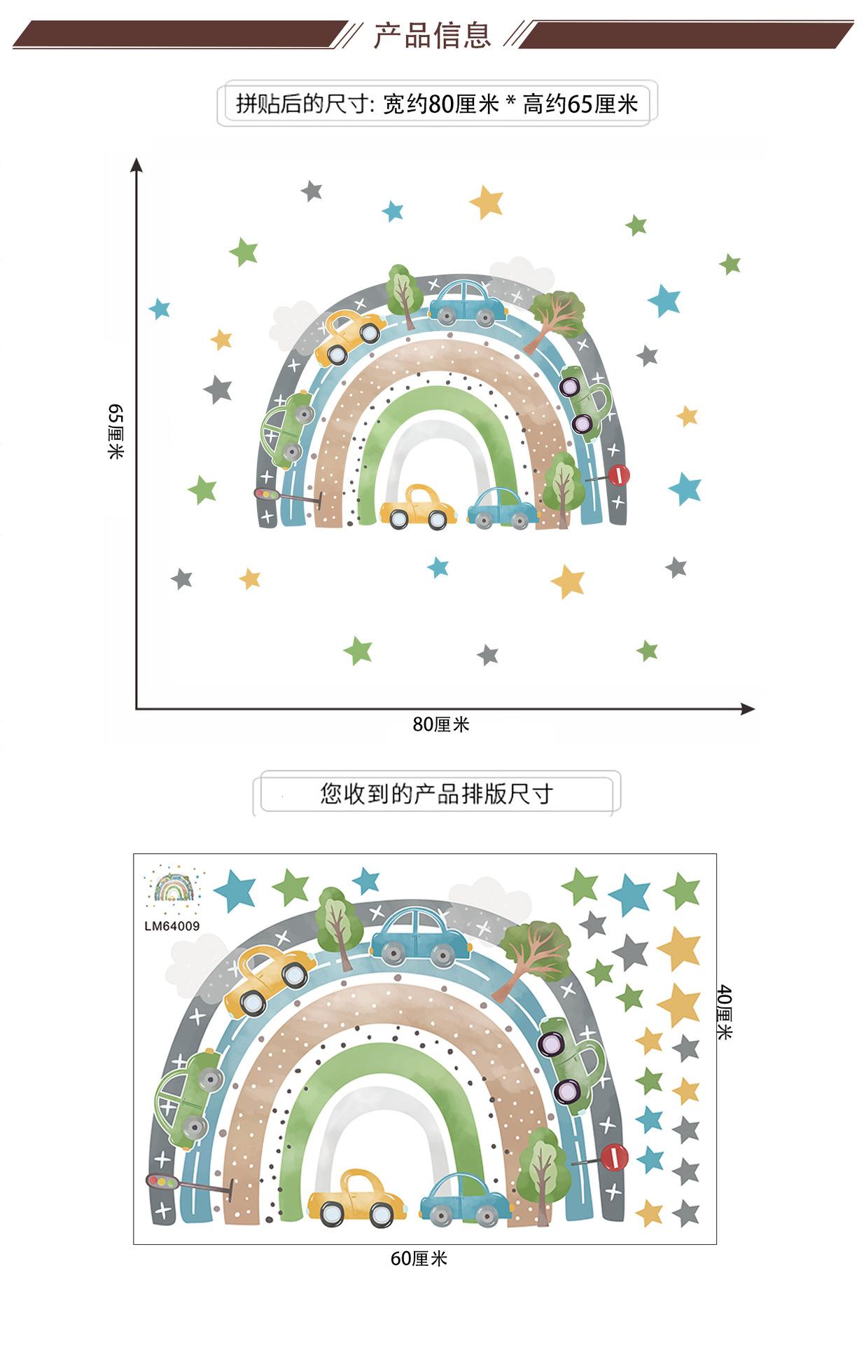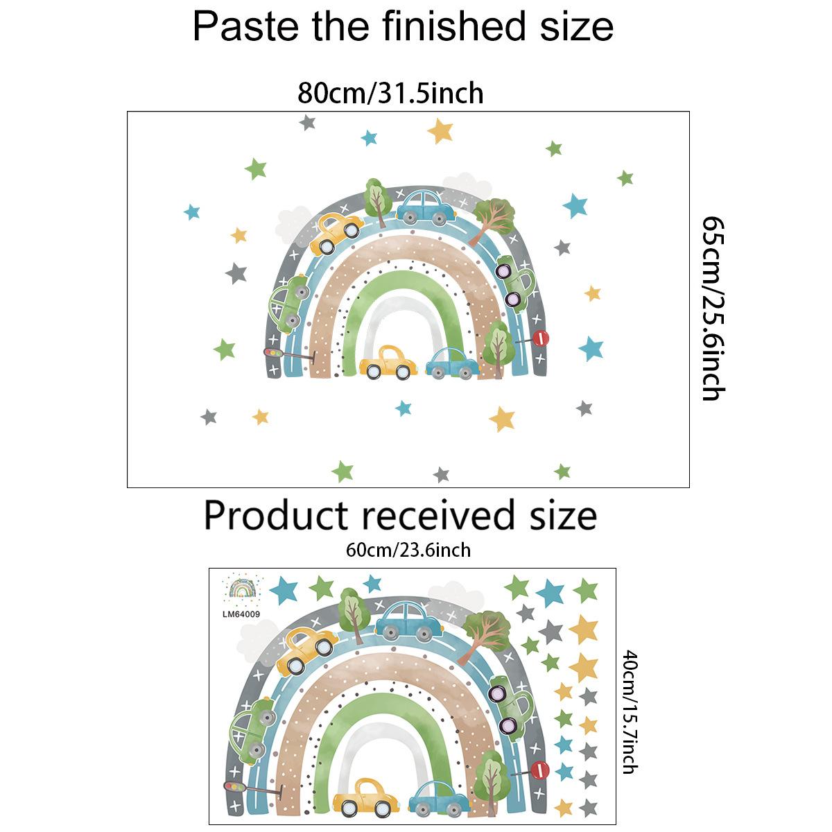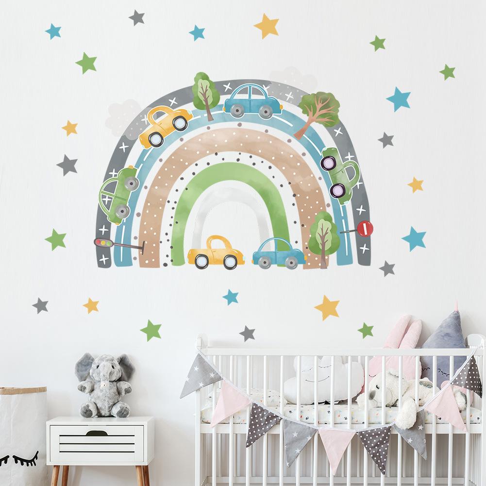 Pegatinas de pared con diseño de coche arcoíris de dibujos animados para habitación infantil, decoración de guardería, papel pintado autoadhesivo extraíble.