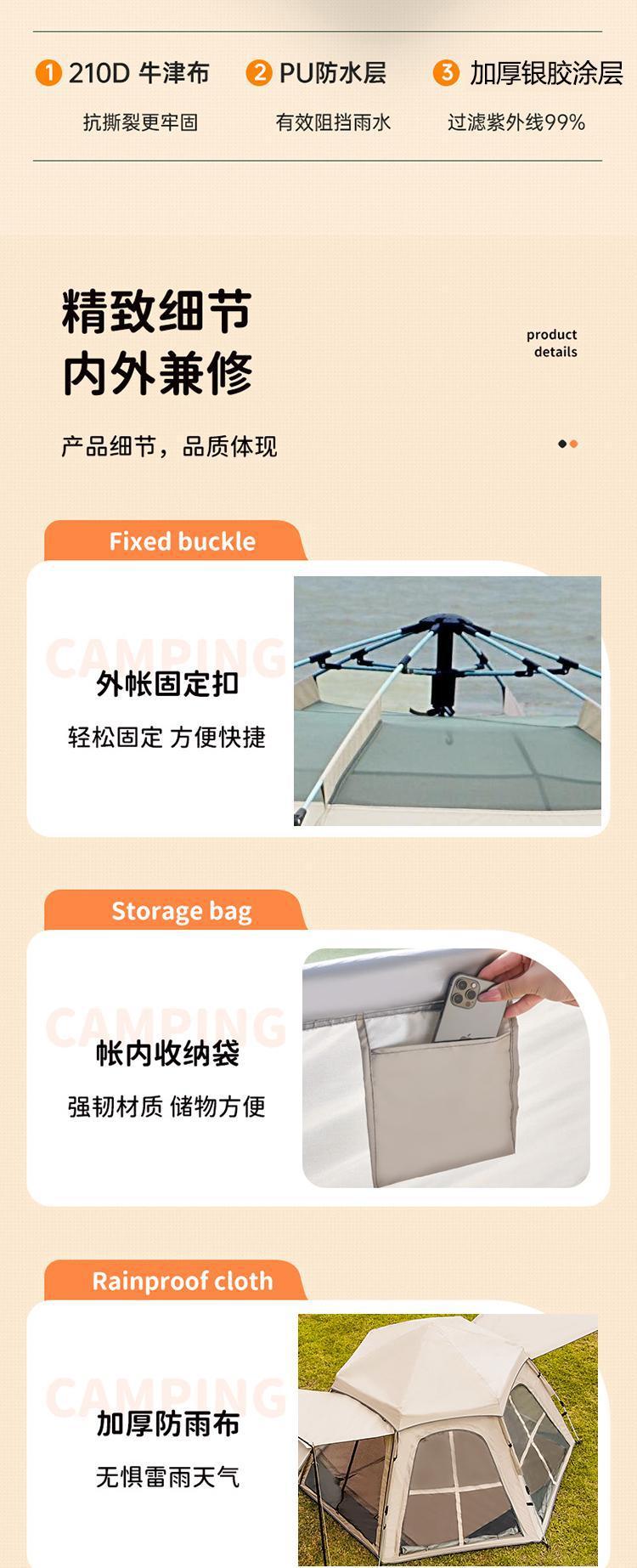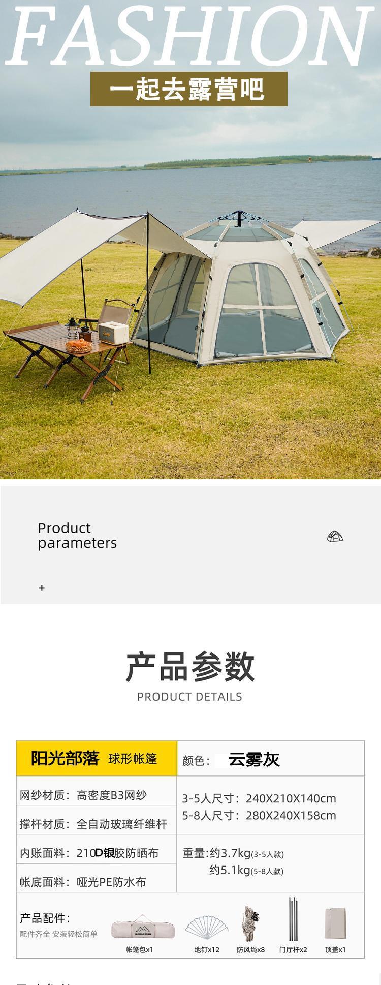 Extra large 8-10 people [cloud gray-silver coated] six-sided tent + curtain Single tent (standard)