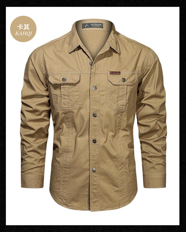 Camisa Nueva de Primavera y Otoño 2025 para Hombre de Manga Larga de Algodón Casual de Color Sólido Ropa de Trabajo Chaqueta Slim para Jóvenes y Mediana Edad