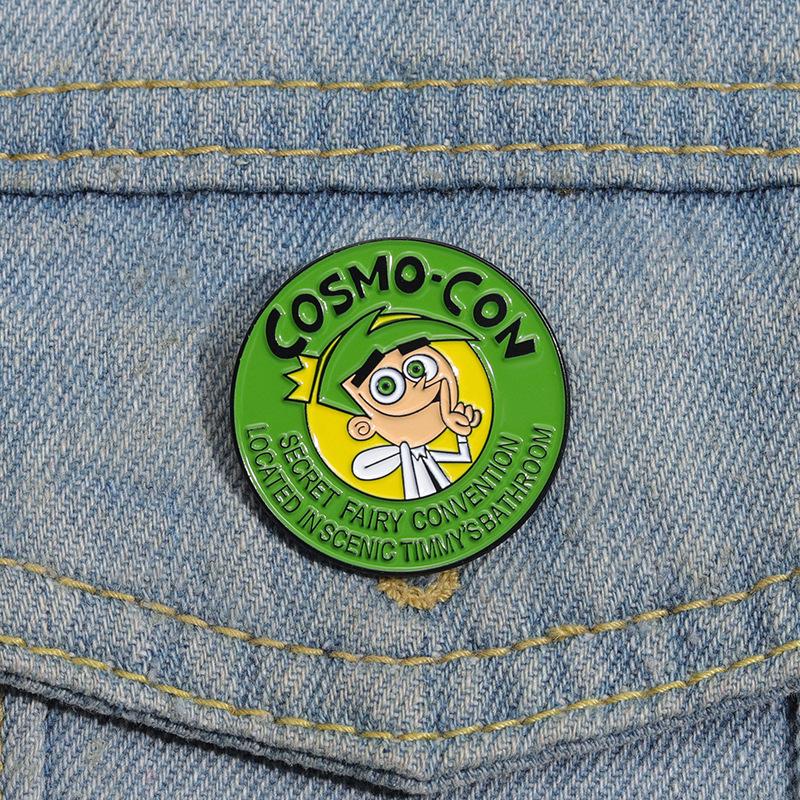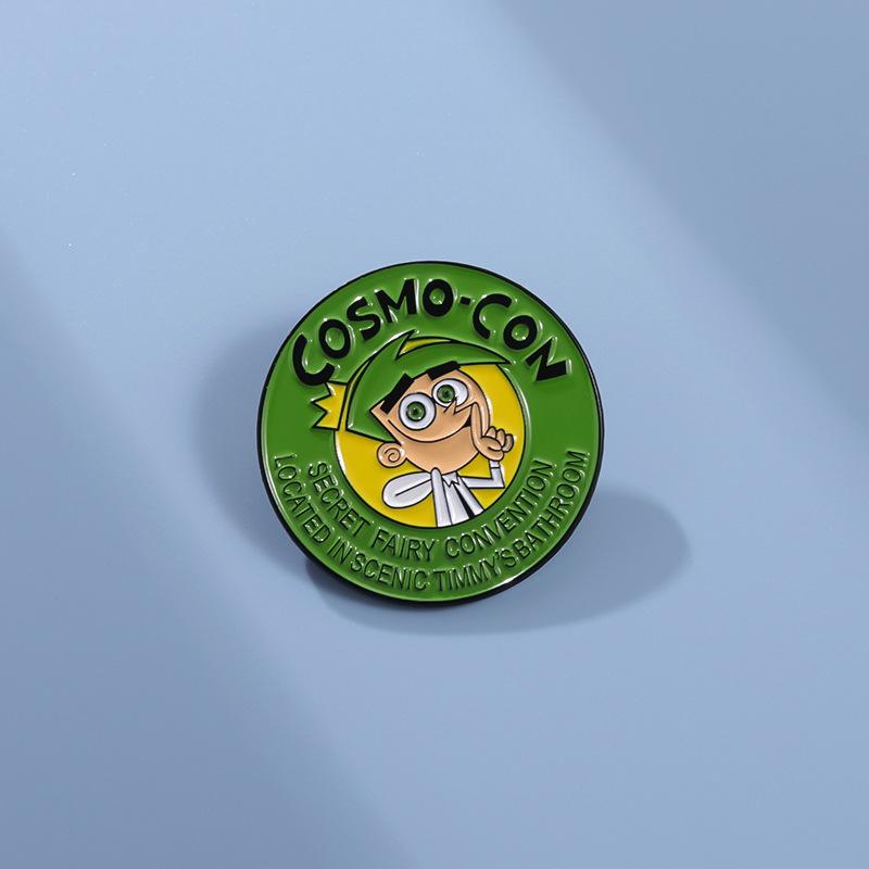 Broche redondo de dibujos animados, gran oferta europea y americana, con diseño creativo de villano, letras en inglés, exquisito ramillete irregular.