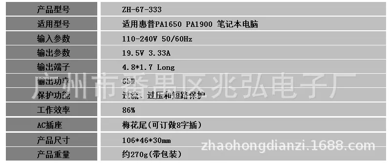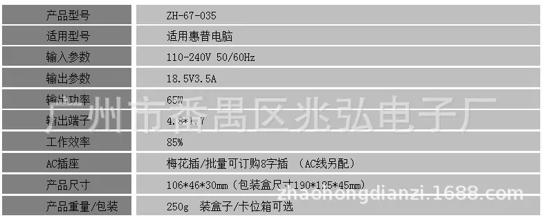 19.5V3.33A DC:4.8*1.7Long, 18.5V3.35A DC:4.8*1.7