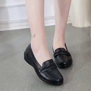 Zapatos de madre de mediana edad zapatos individuales de cuero genuino suela suave mediana edad y ancianos punta redonda zapatos de cuero tacones de cuña zapatos de mujer antideslizantes para ancianos entrega en una pieza