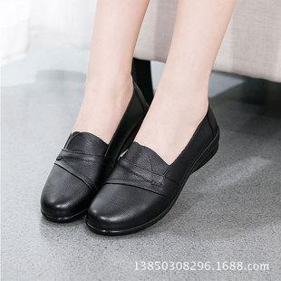 Zapatos de cuero genuino nuevos 2017 para mujeres mayores zapatos planos para madres de mediana edad zapatos individuales suela blanda zapatos de abuela