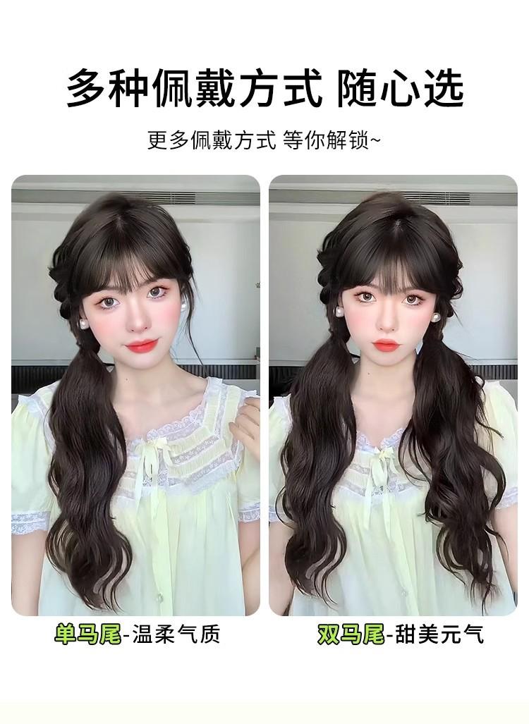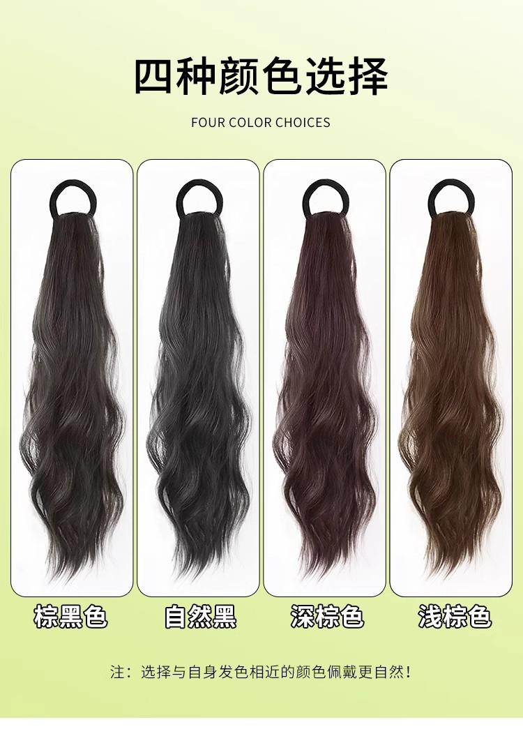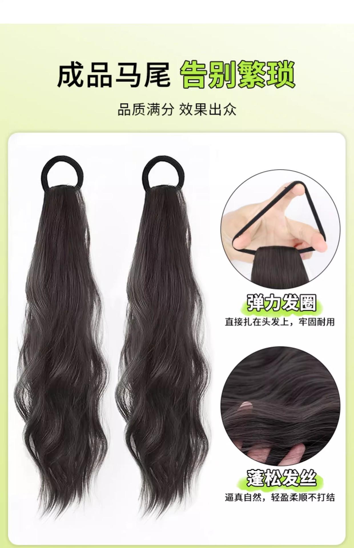 Peluca Cola de Caballo Femenina Cabello Largo Natural Artificial Humano Adhesiva Ondulada Doble Pieza de Peluca de Cola de Caballo Se Puede Atar en una Cola de Caballo Baja