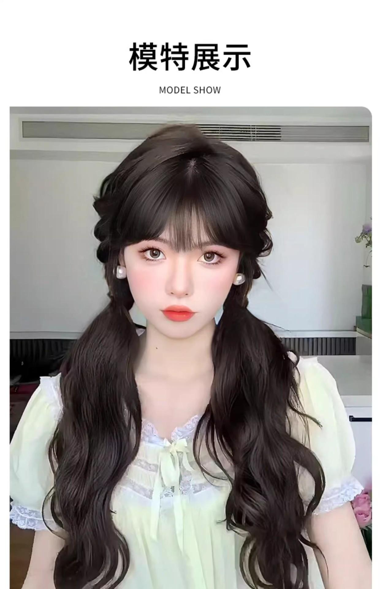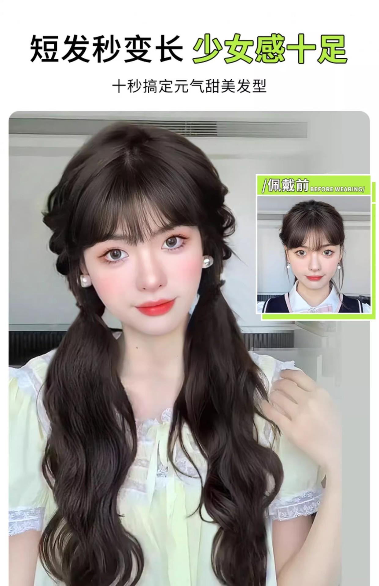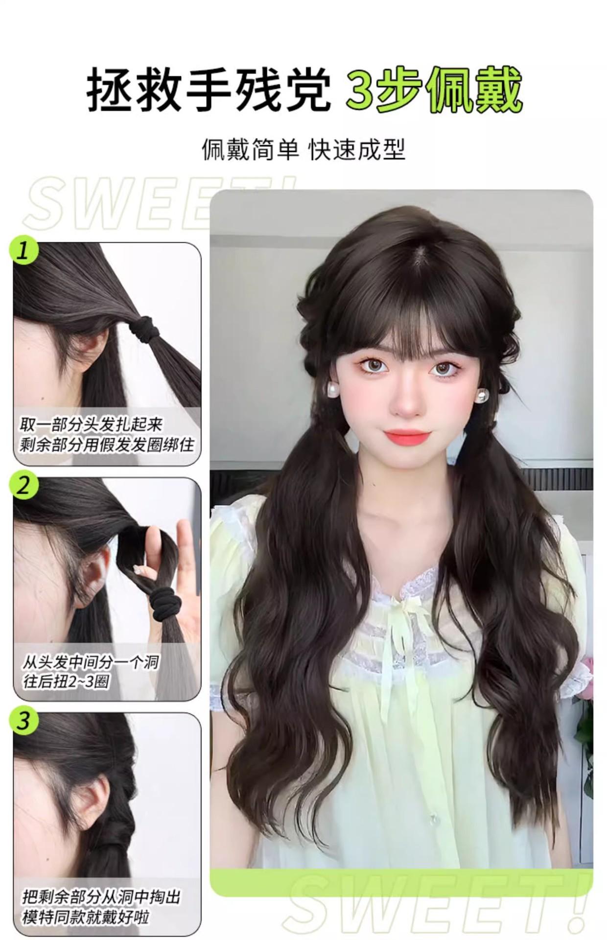 Peluca Cola de Caballo Femenina Cabello Largo Natural Artificial Humano Adhesiva Ondulada Doble Pieza de Peluca de Cola de Caballo Se Puede Atar en una Cola de Caballo Baja