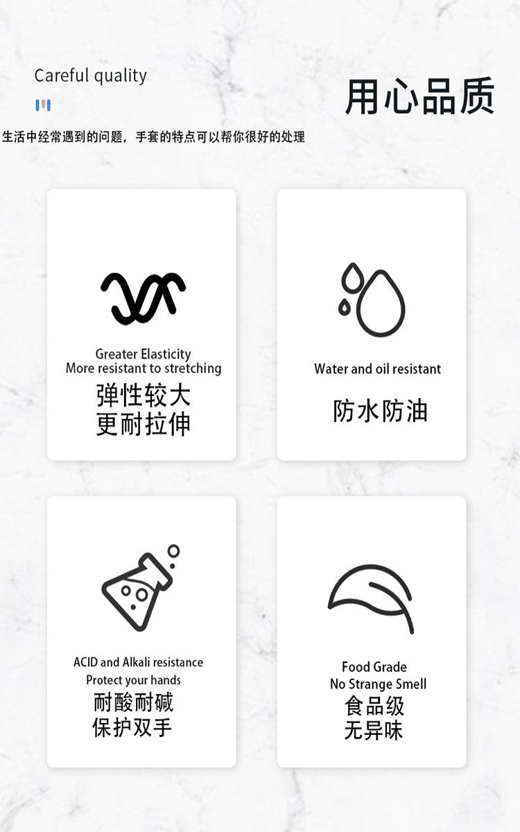 Guantes de nitrilo desechables de grado alimenticio, de alta elasticidad, en caja, para cocina, tareas domésticas, de goma, sin polvo, engrosados y resistentes.