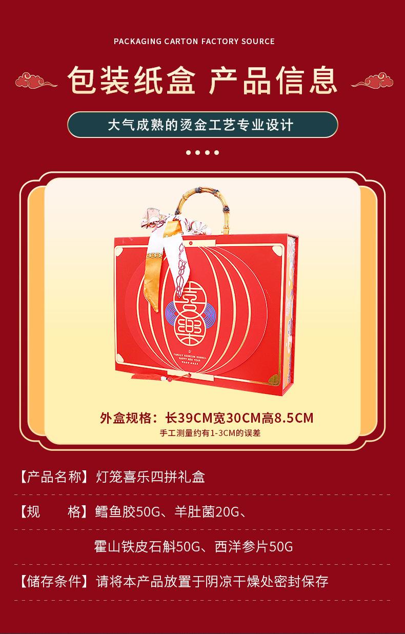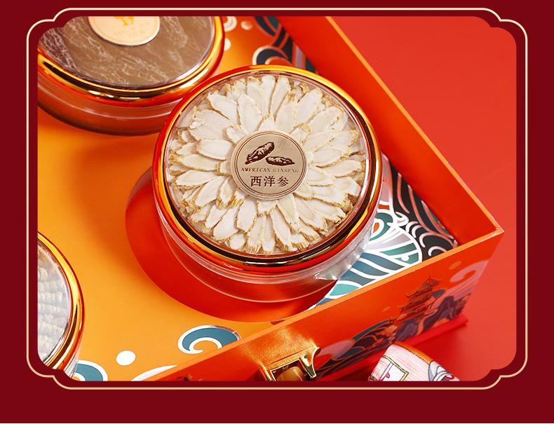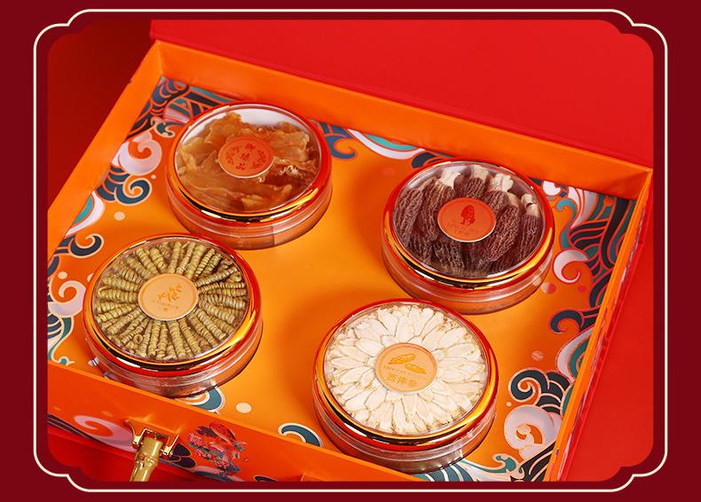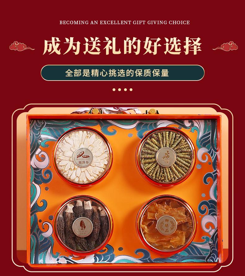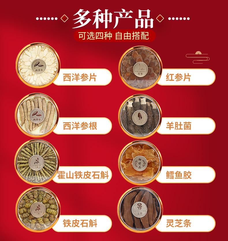Compra Auténtica caja de regalo de cuatro piezas de Dendrobium Huoshan, pegamento de pescado, Ganoderma lucidum, ginseng americano, ginseng rojo, productos secos nutritivos, regalos del Festival de Primavera para personas mayores. al por mayor en Joom.pro