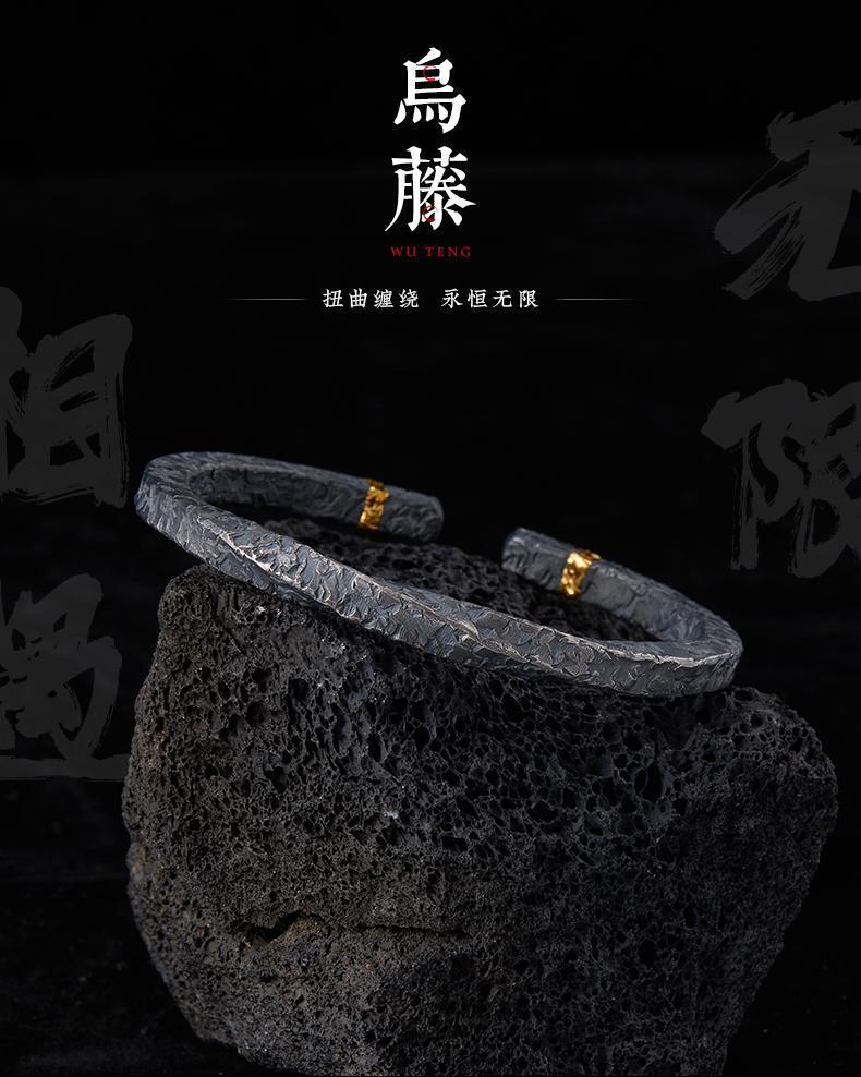 [Pulsera Wu Teng] Pulsera Anillo de Möbius para Hombre Personalidad Retro Nicho ins Pulsera con Pulsera de Apertura Dorada