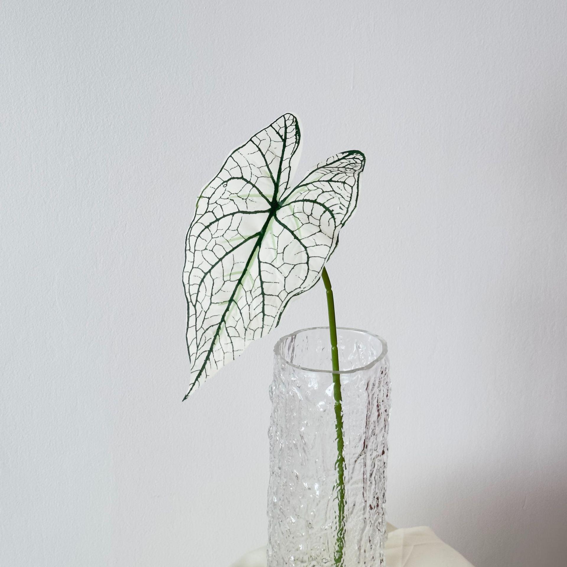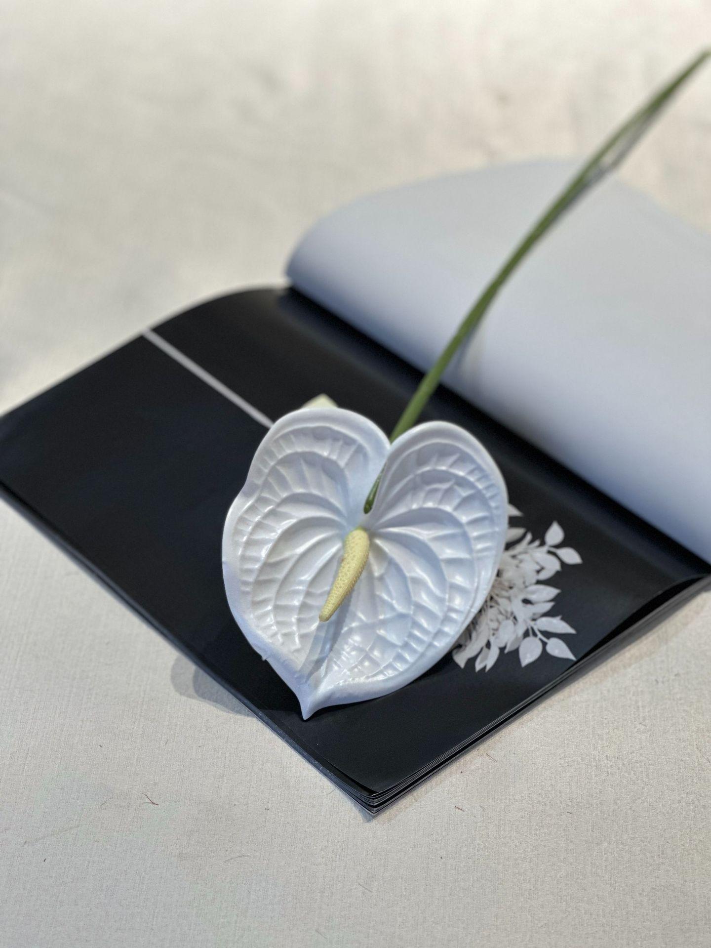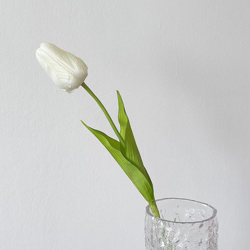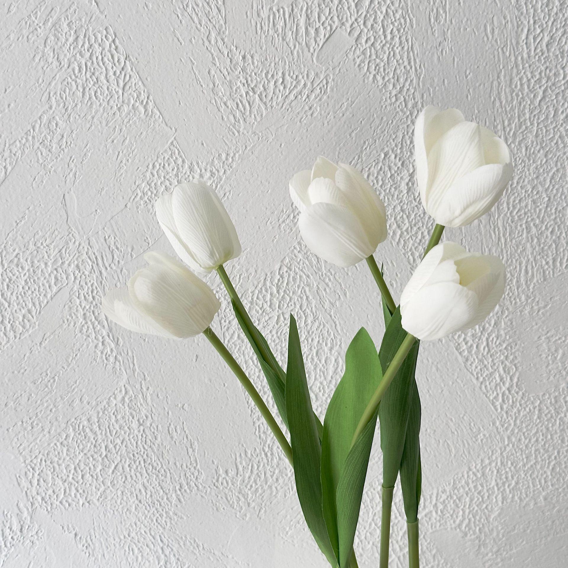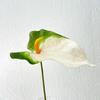 White and green 3-head tulips, White and green single branch of large colorful palm, White green pine cone flo...