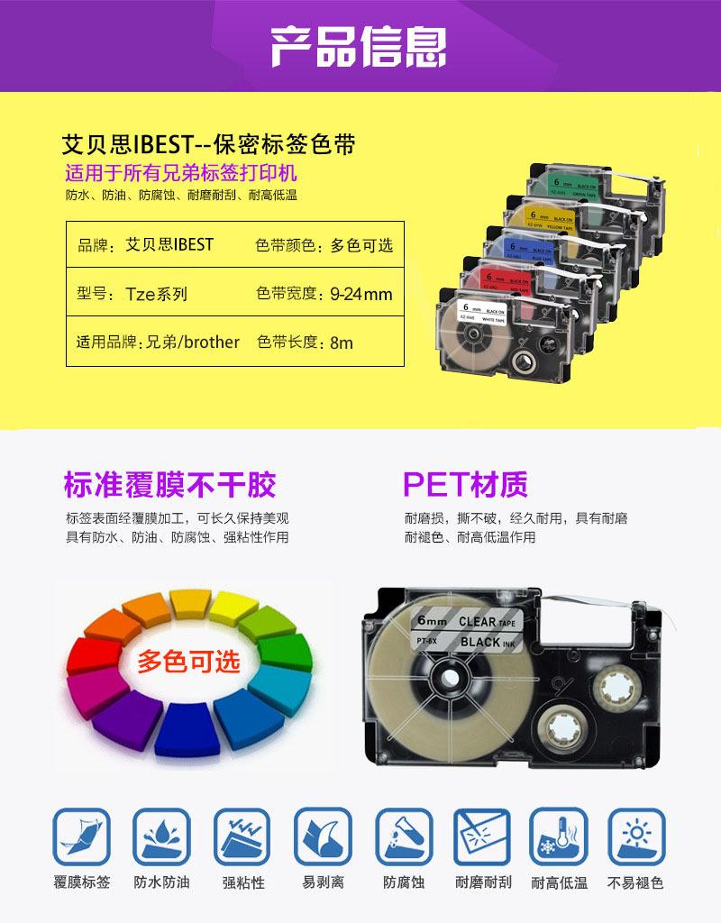 Ebeth aplica cinta de etiquetas confidenciales Brother 18mm fondo blanco negro TZe-SE4 y otras series