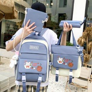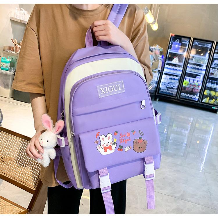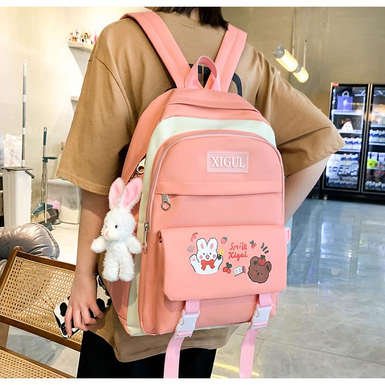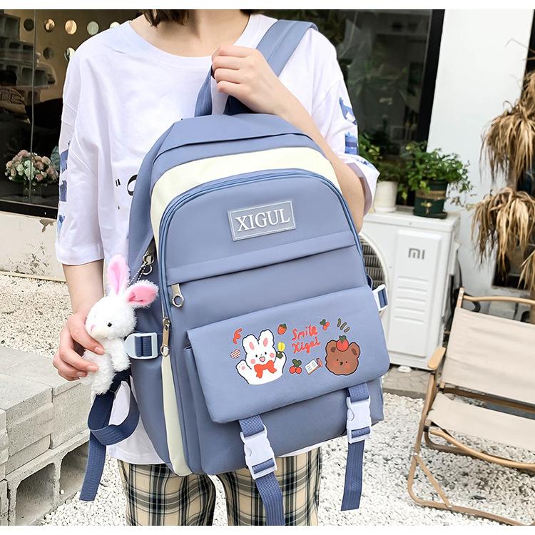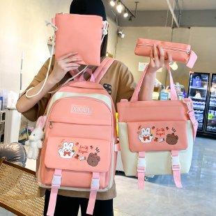 Mochila escolar ligera y bonita de cuatro piezas para estudiantes de secundaria, estilo coreano, estilo universitario, informal, combinable con todo, para niñas.