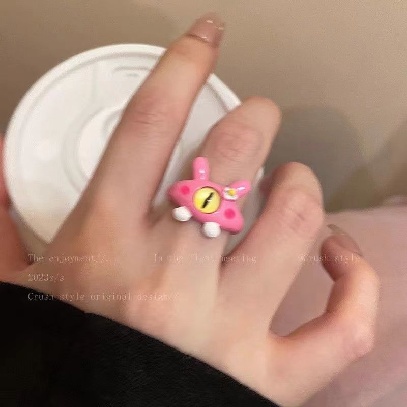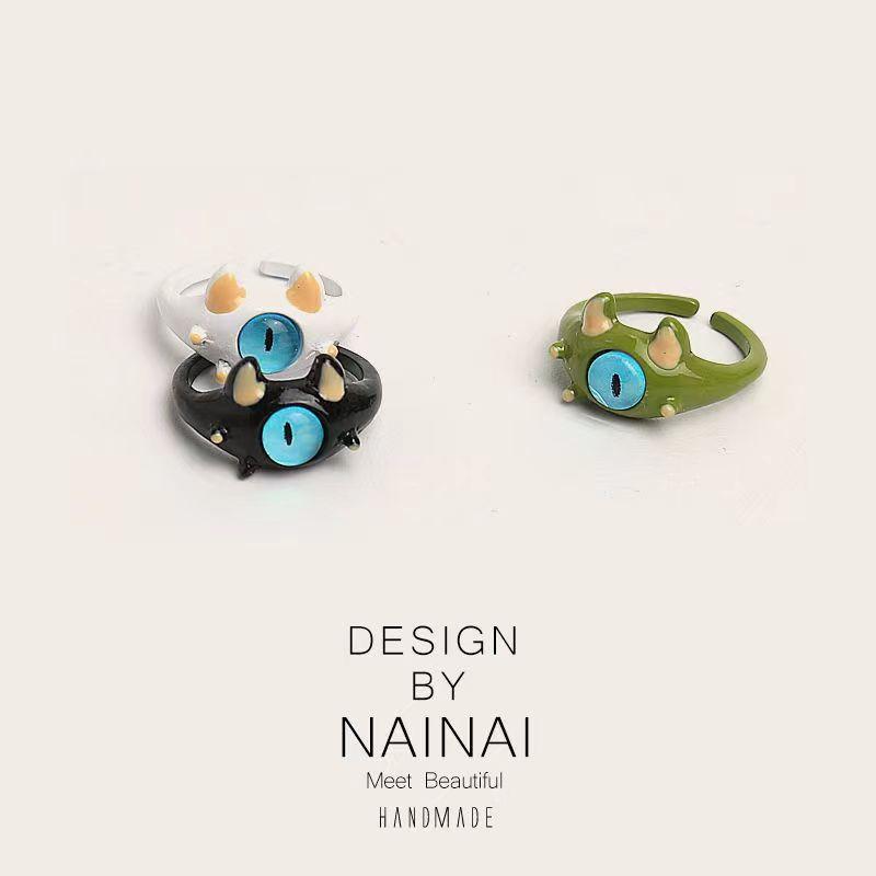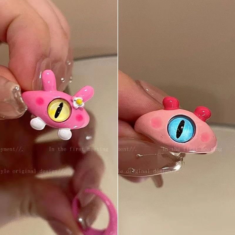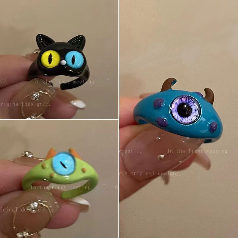 Colección Little Monster ~ Lindo anillo de monstruo de un solo ojo con diseño de nicho para estudiantes, anillo abierto único