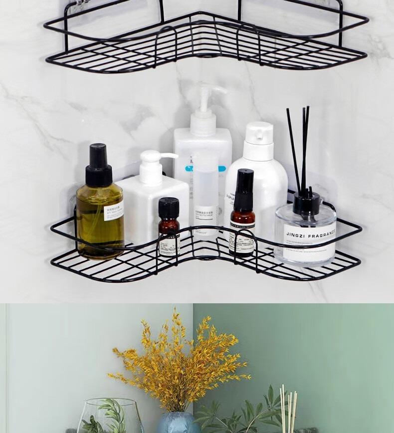 Estante de almacenamiento triangular para baño, inodoro, sin perforaciones, estante de almacenamiento de hierro para cocina, cesta de almacenamiento, estante de pared para inodoro
