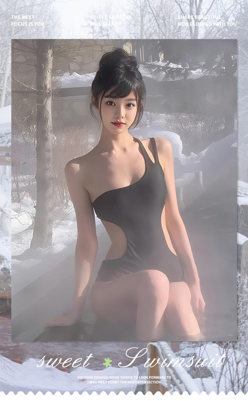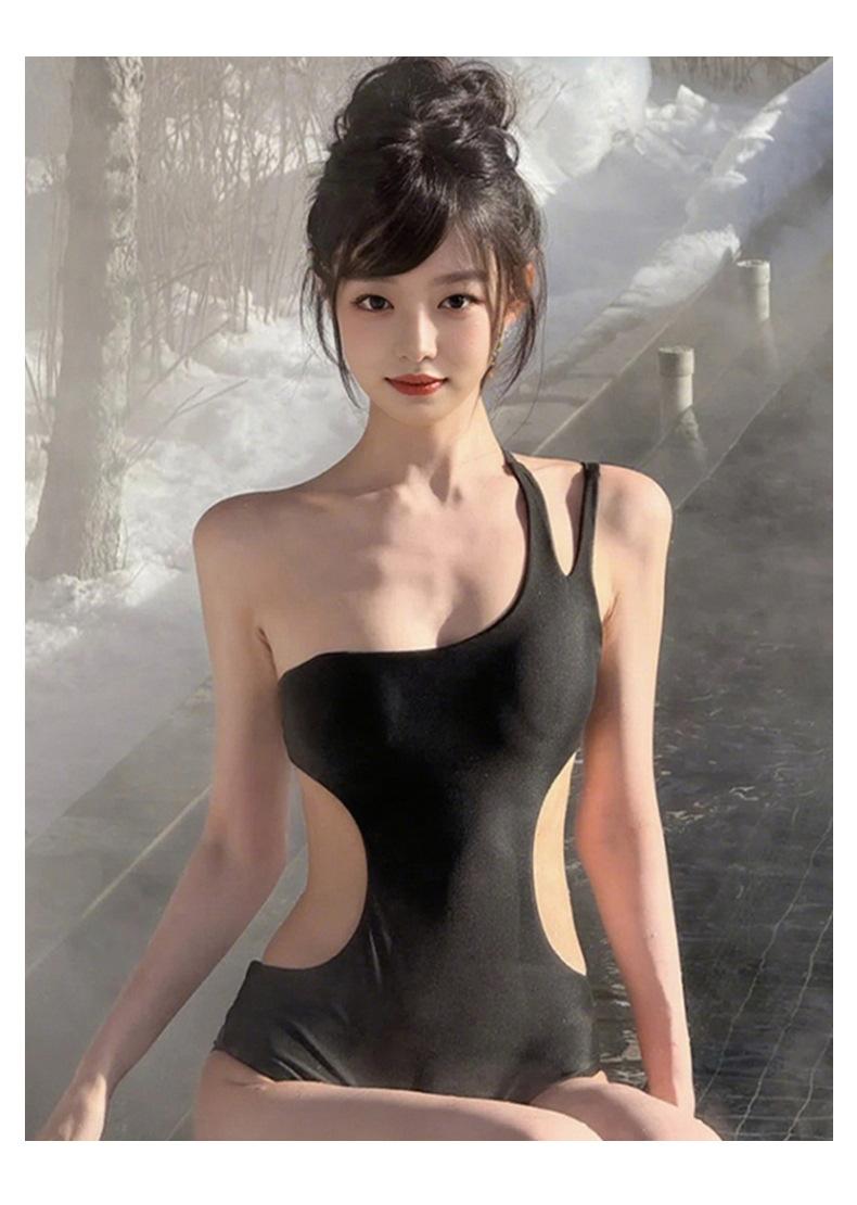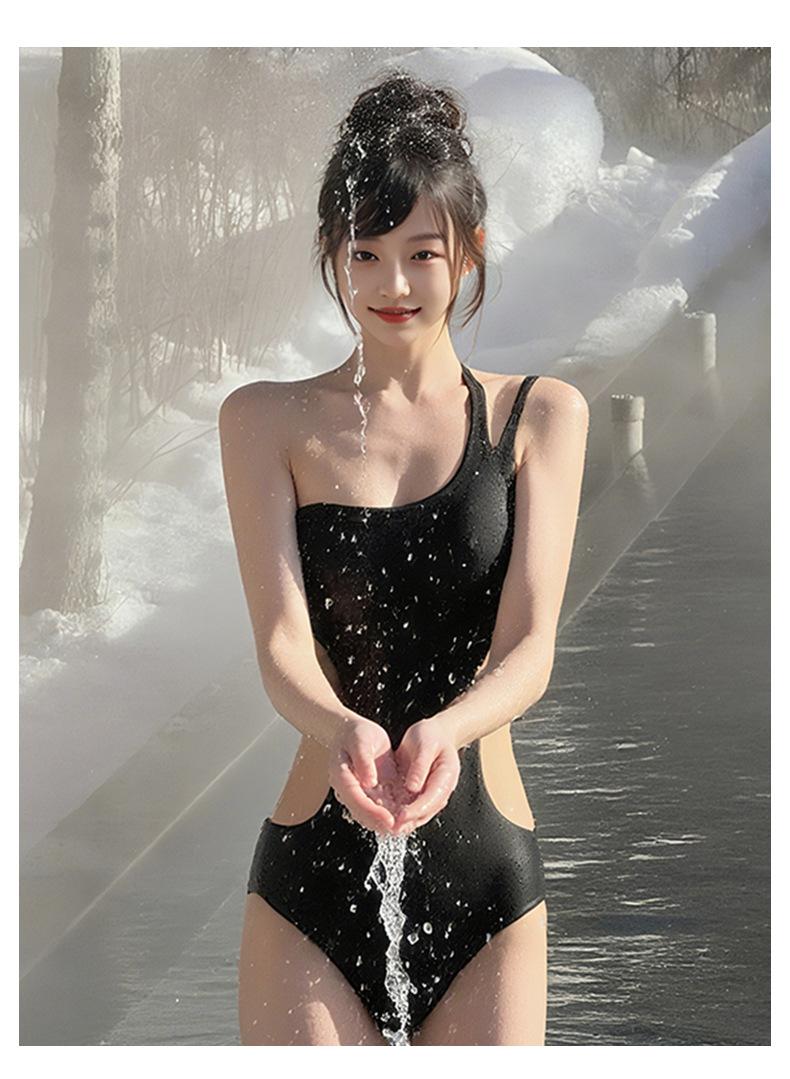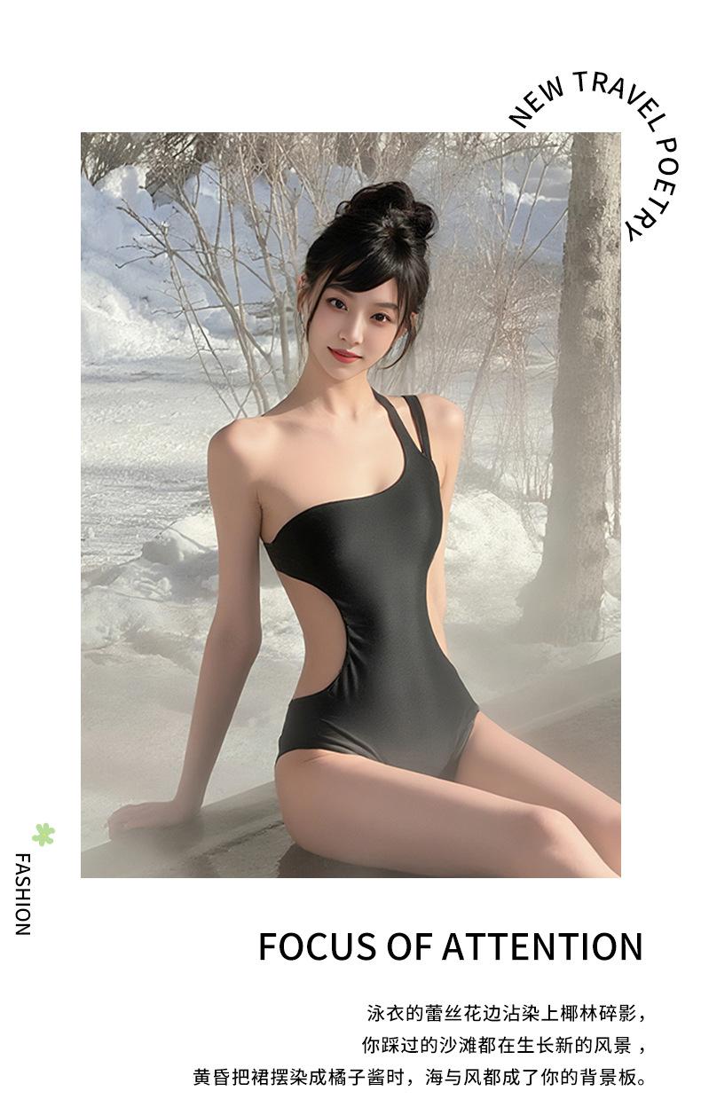 Traje de baño de verano para mujer, nuevo, sexy, rojo, libro de Internet, celebridad, de una pieza, negro, sin espalda, de moda, para vacaciones en aguas termales.