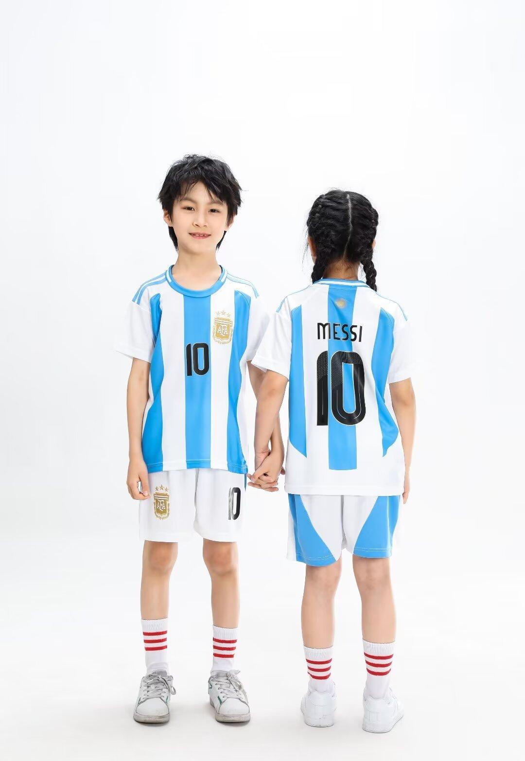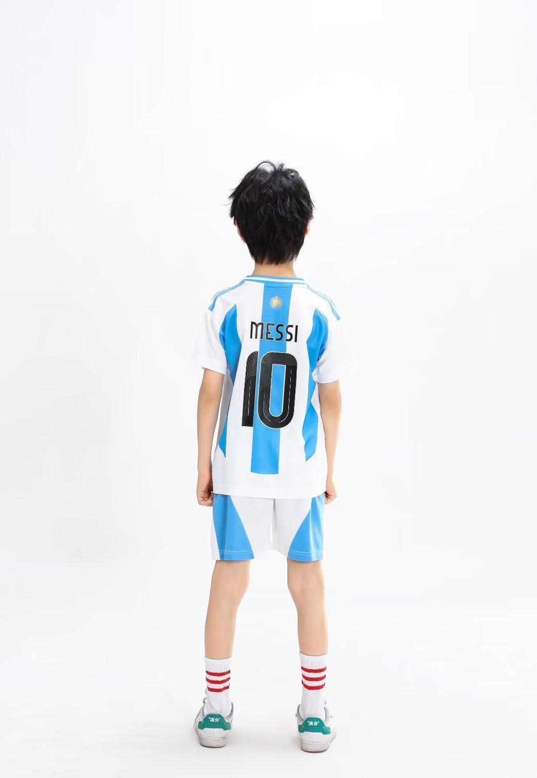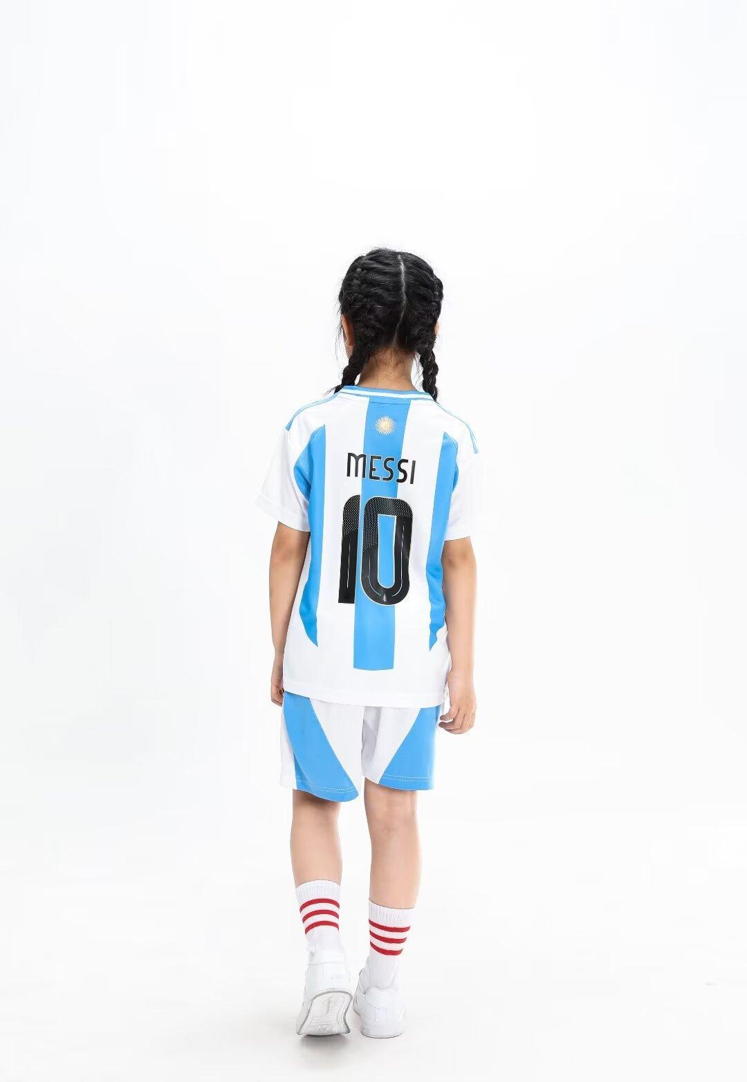 24-25 Argentina Local 10 Messi Traje de Fútbol Camiseta de Adulto para Niños 14 yardas-3XL