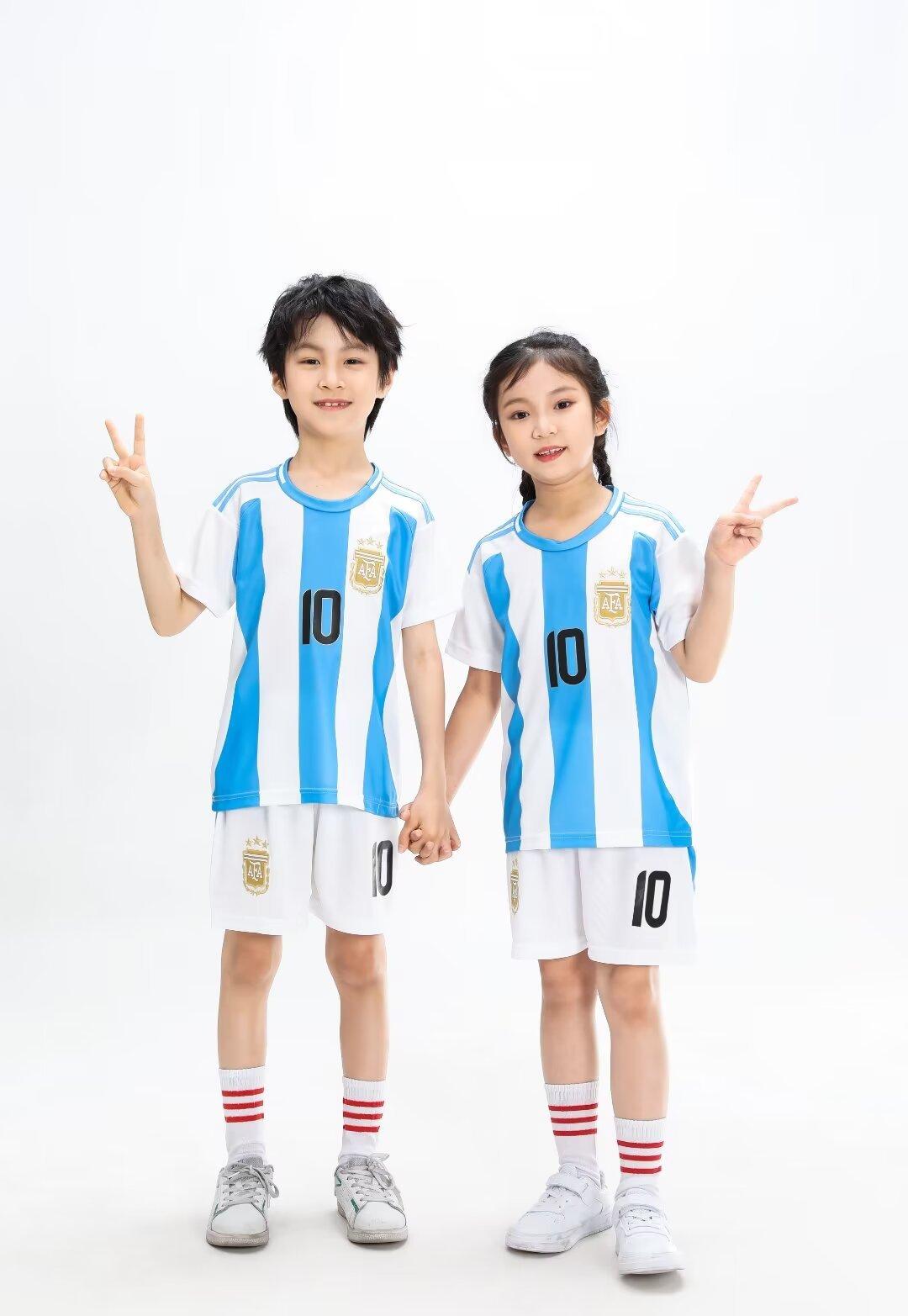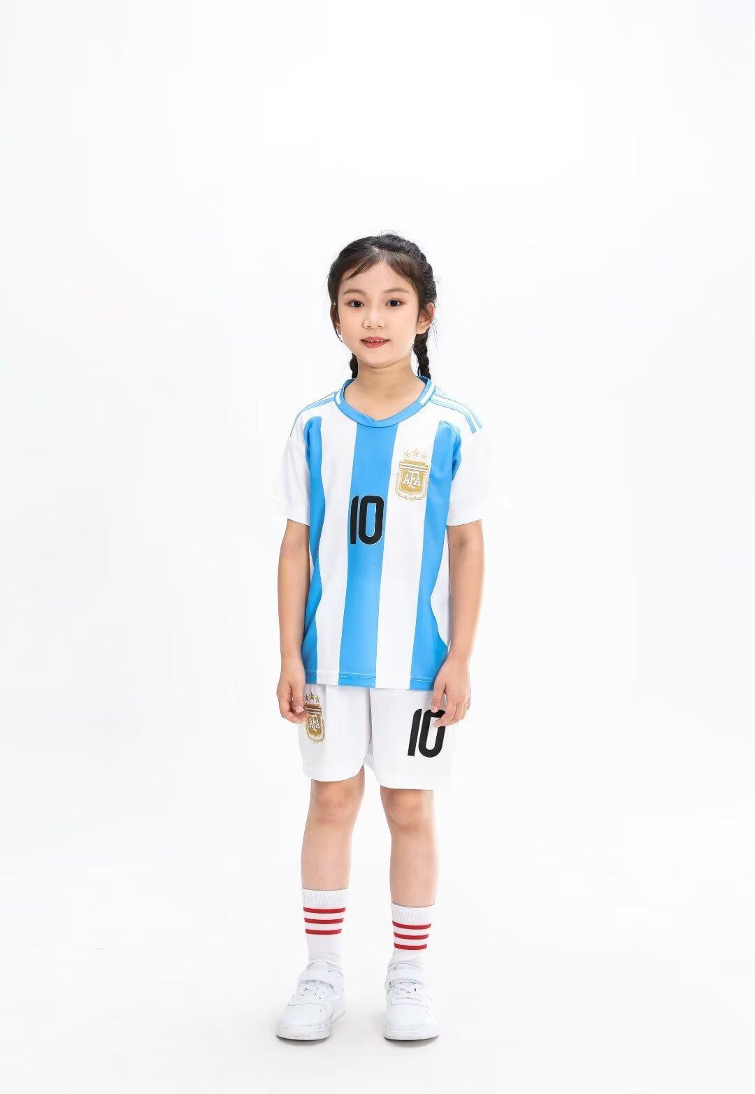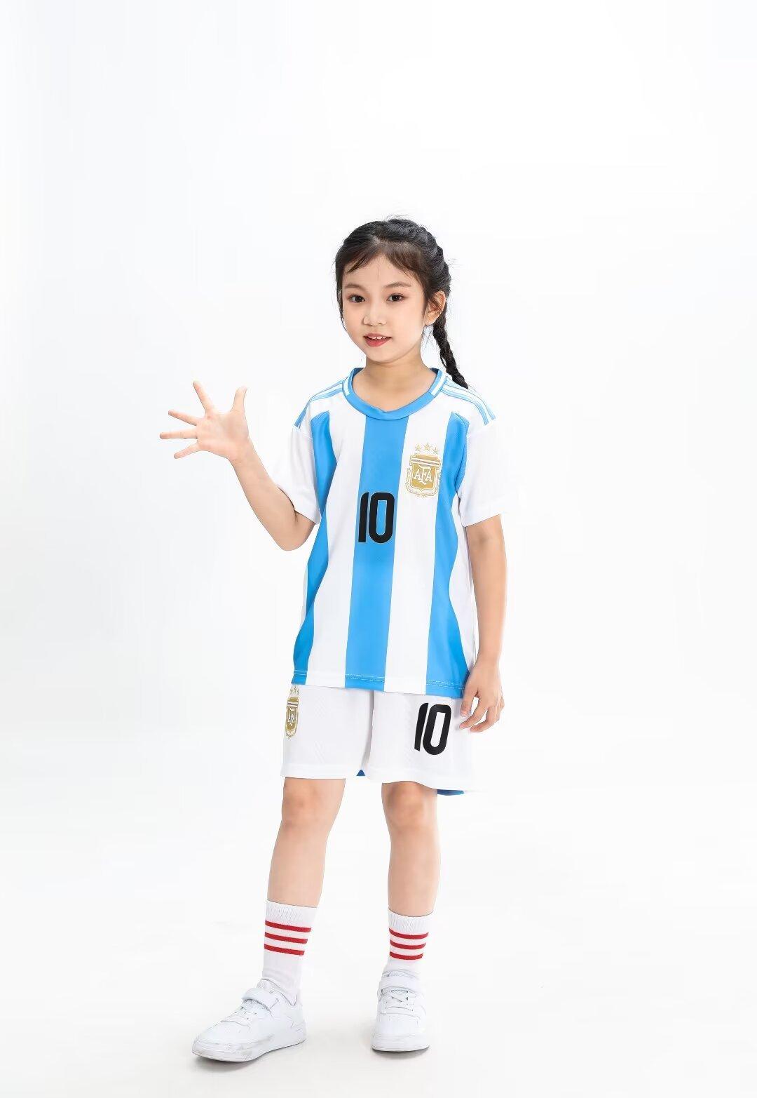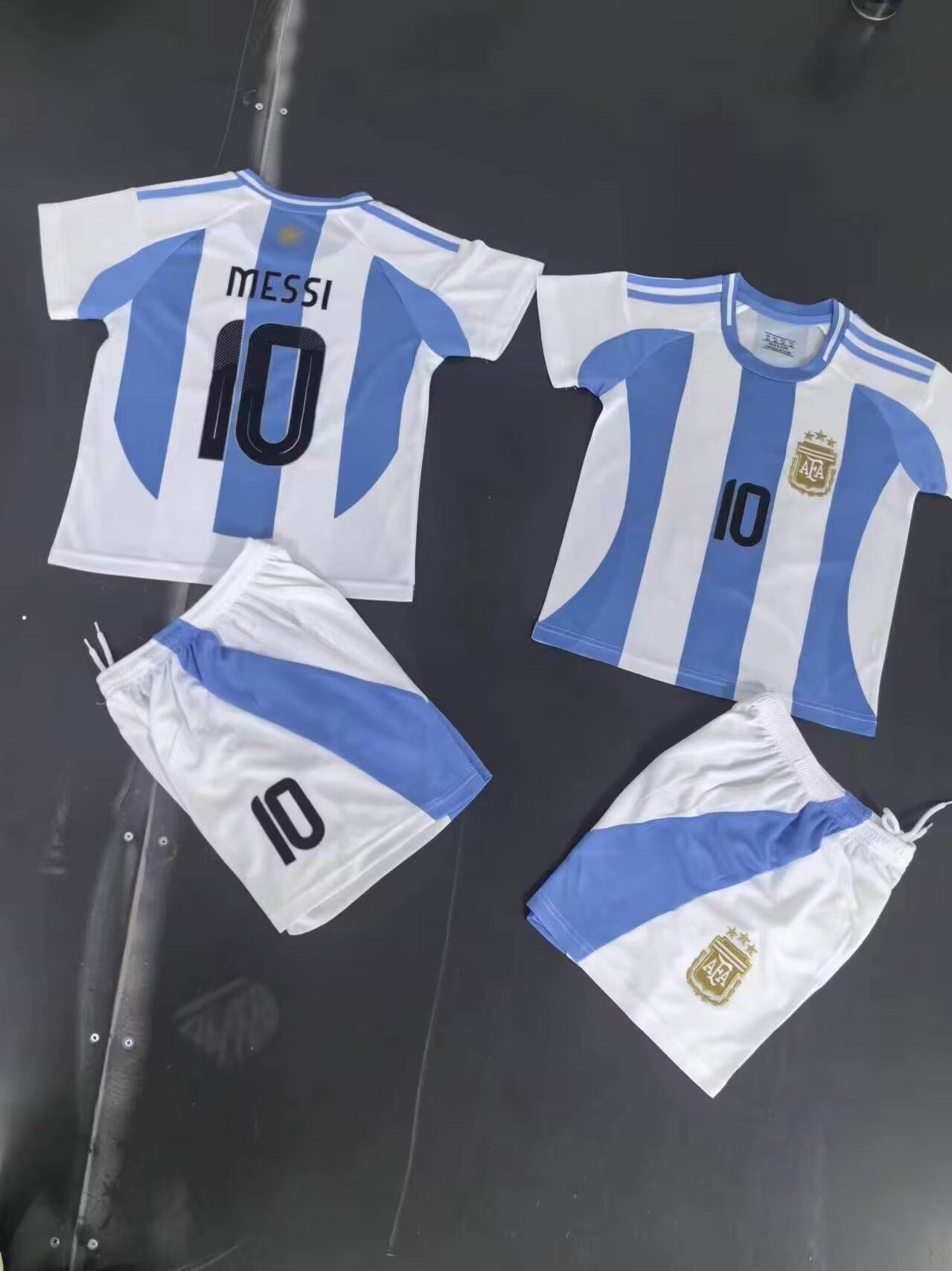 24-25 Argentina Local 10 Messi Traje de Fútbol Camiseta de Adulto para Niños 14 yardas-3XL