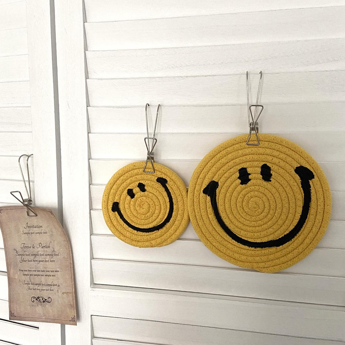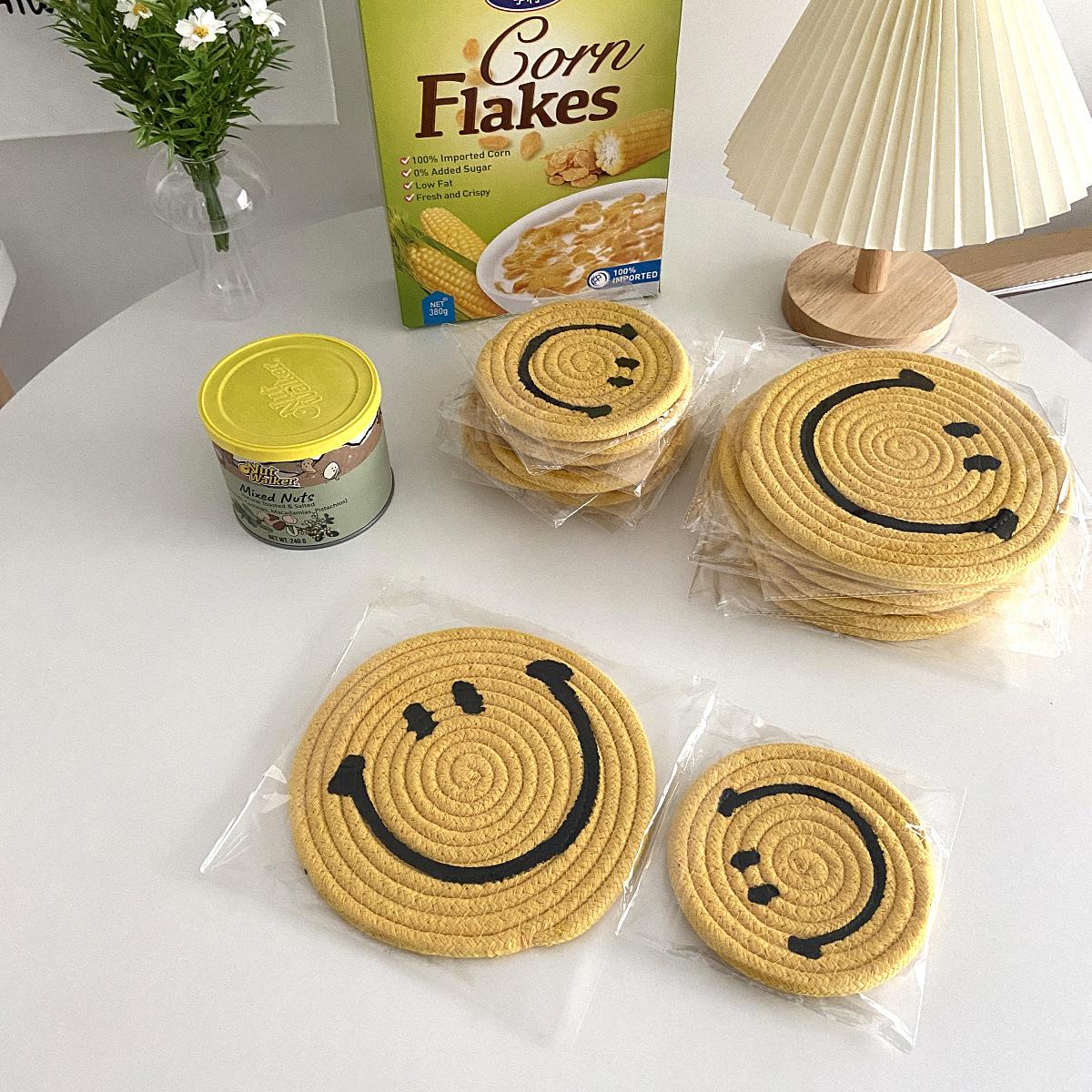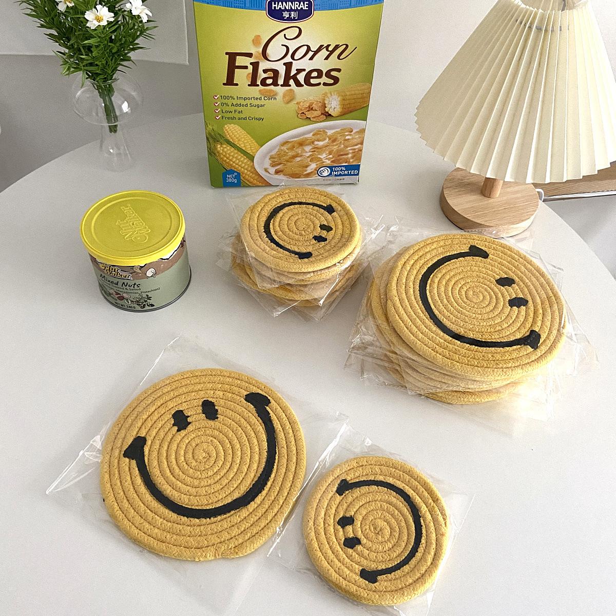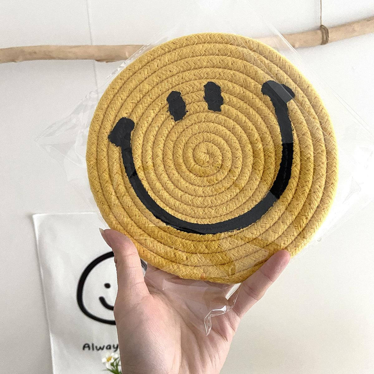 Posavasos amarillo sonriente, bonito tapete aislante térmico antiescaldamiento para el hogar, mantel individual, decoración de escritorio, accesorios para fotos