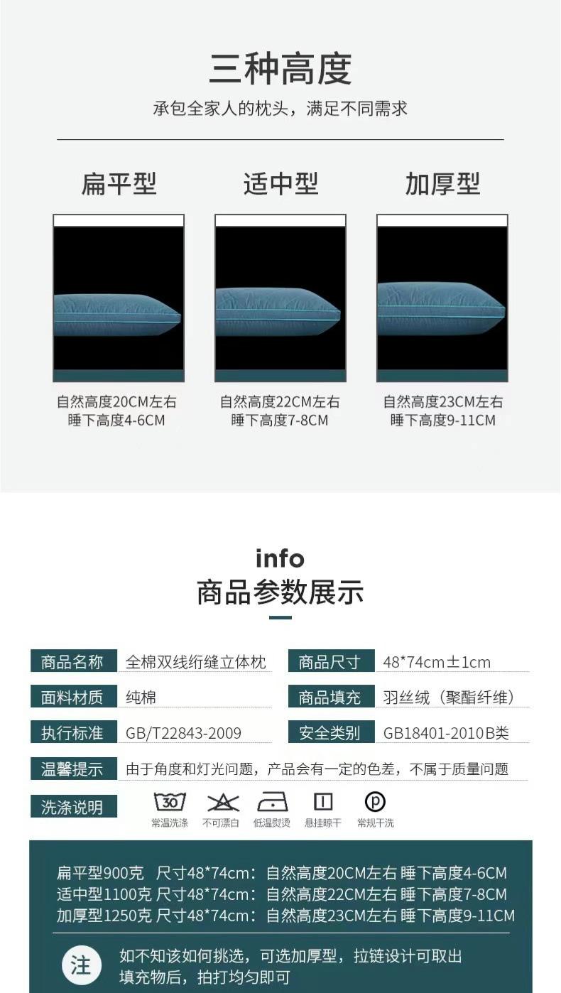Stereo low pillow 900g white 48x74/only, Stereo middle pillow 1100g white 48x74/only, Three-dimensional high p...