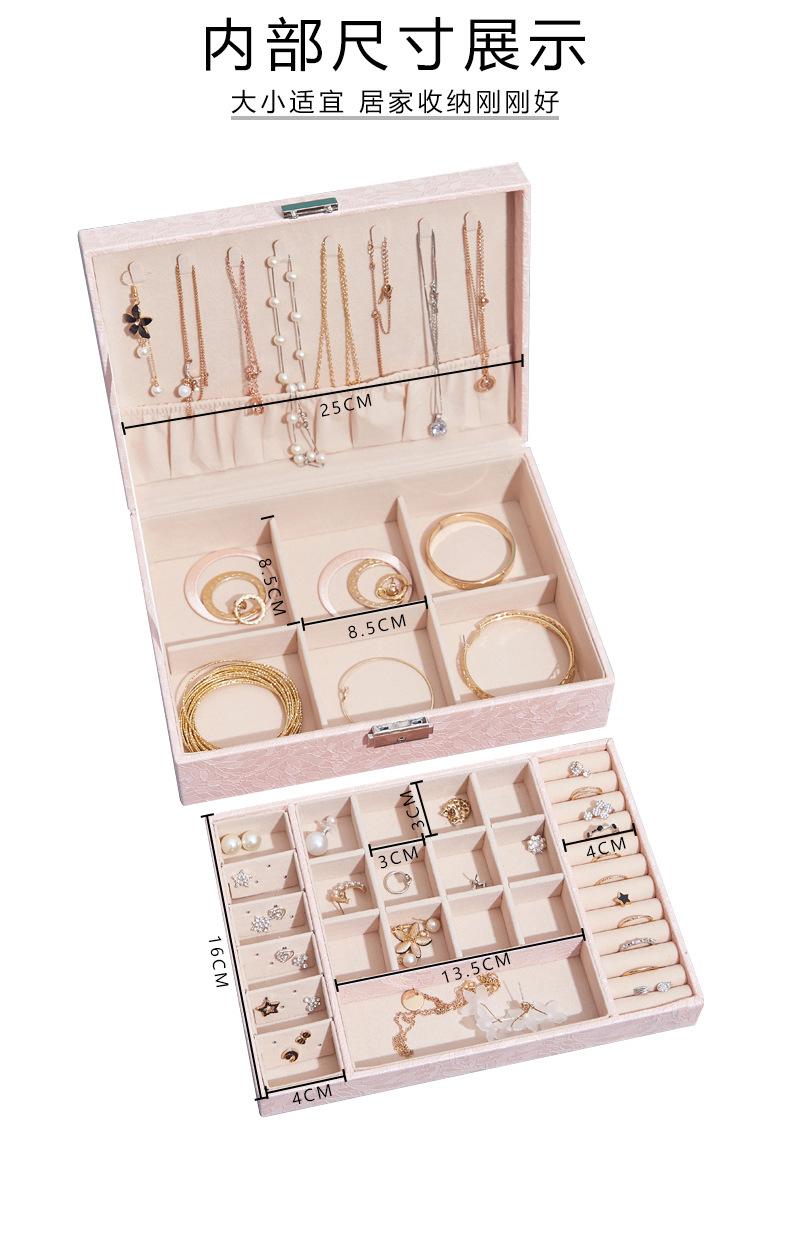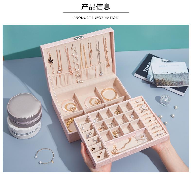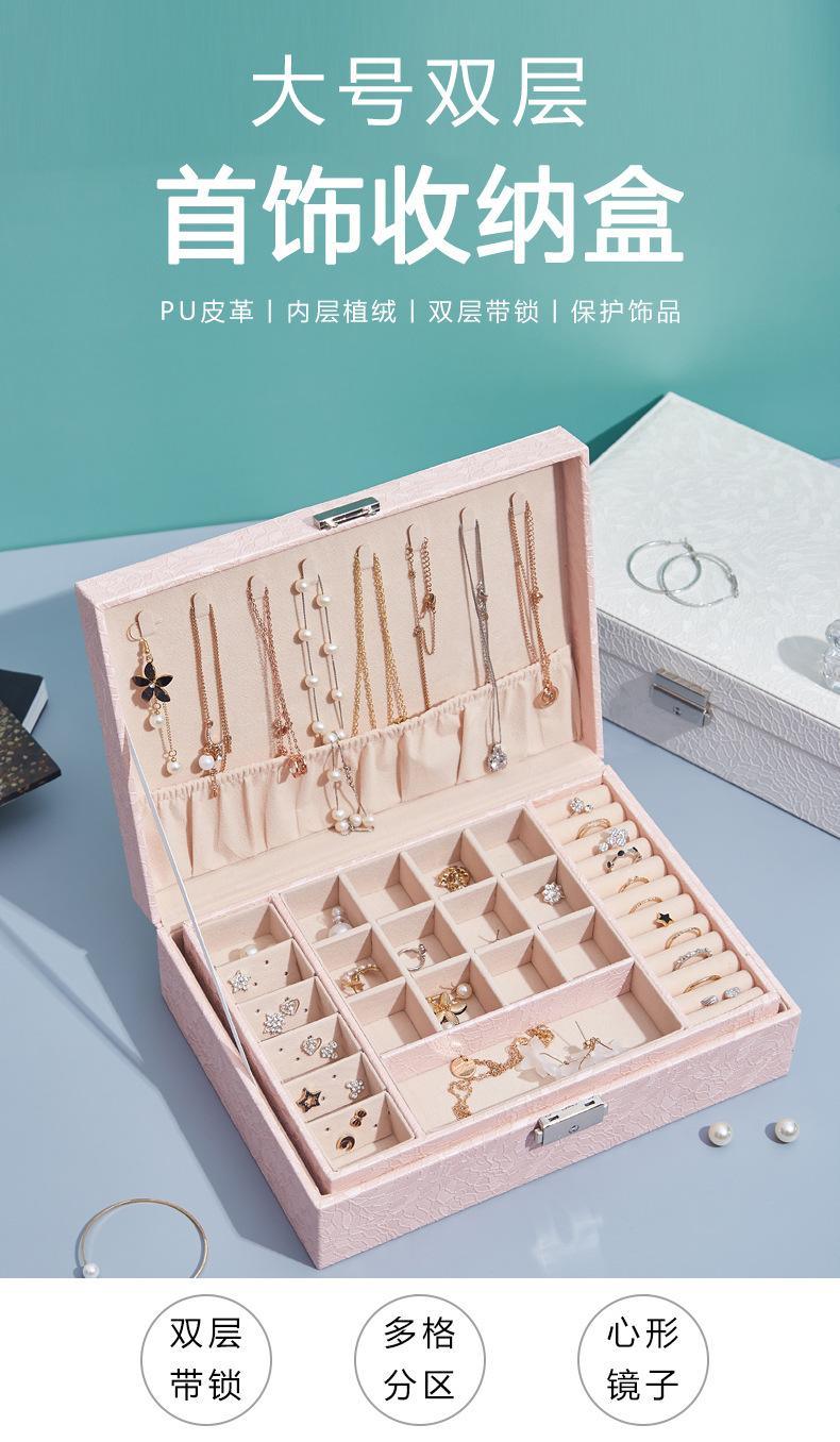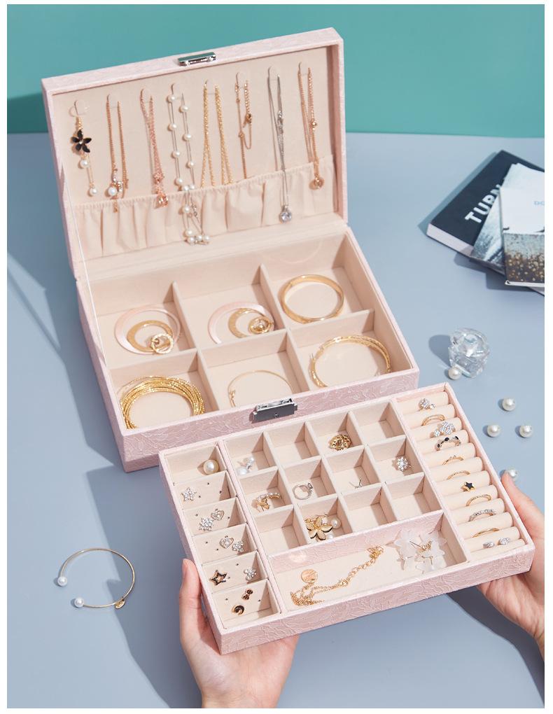 Nueva caja de almacenamiento de joyas de gran capacidad de doble capa, caja de joyería, caja de joyería para pendientes, anillos, collares, caja de joyería