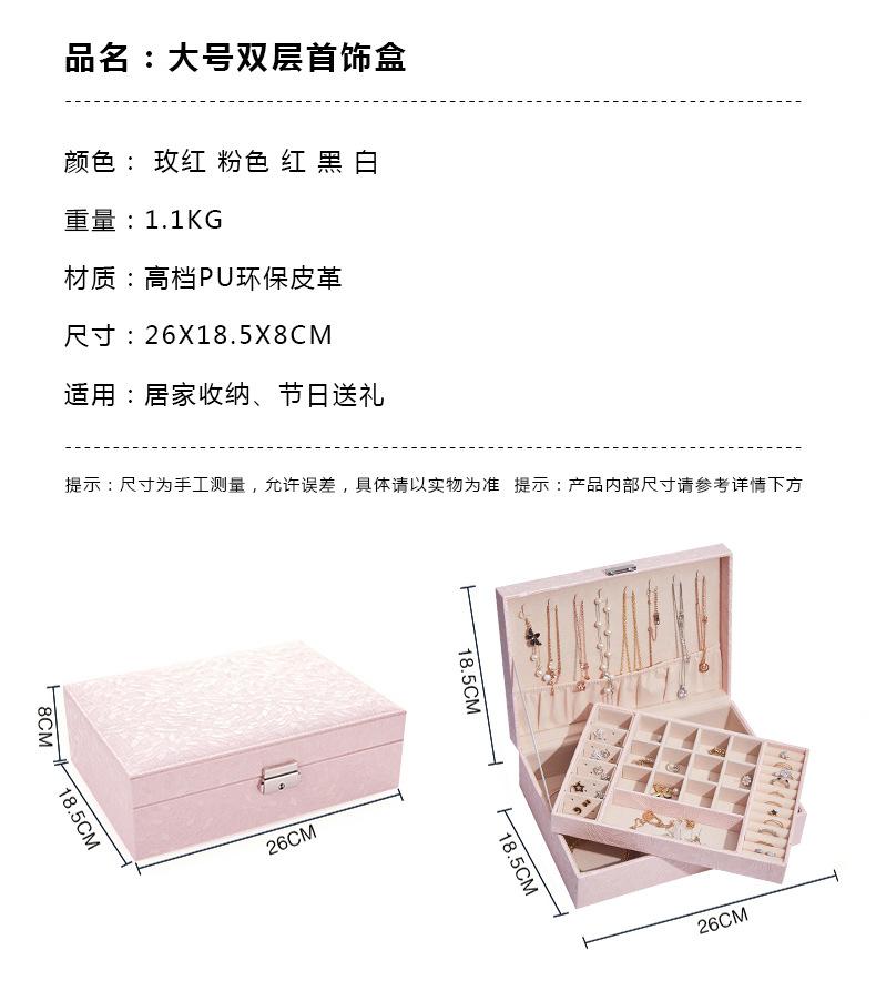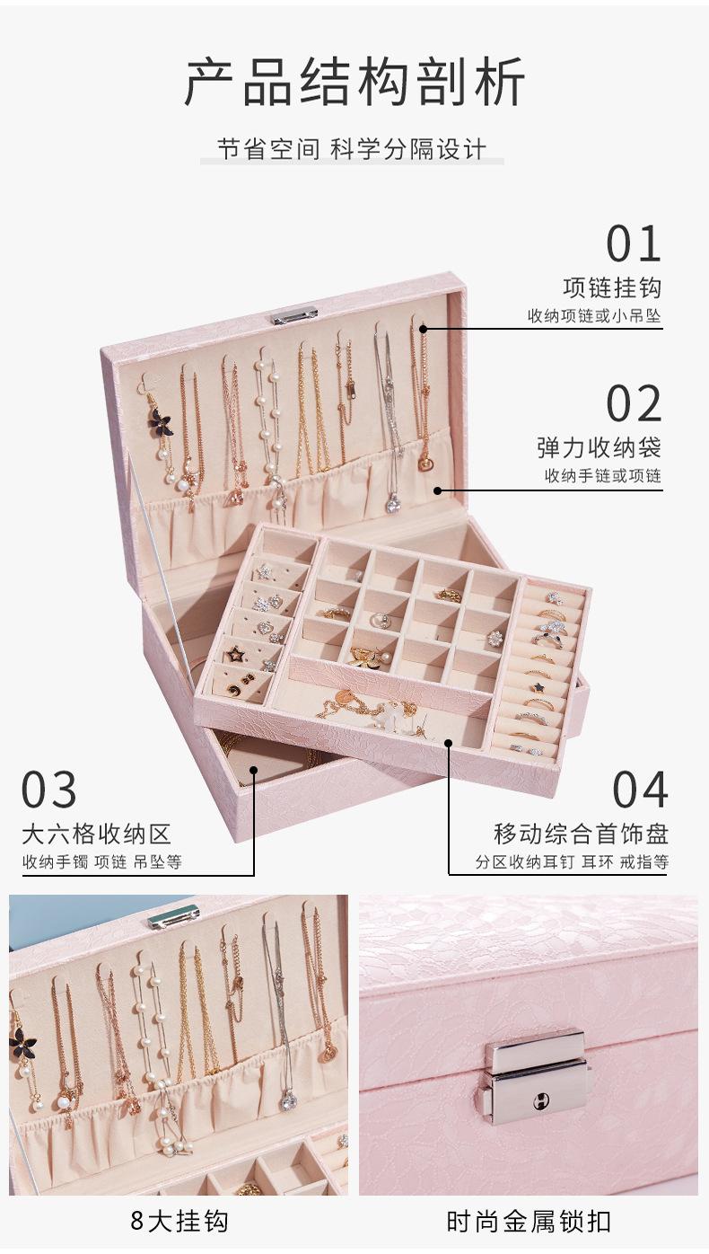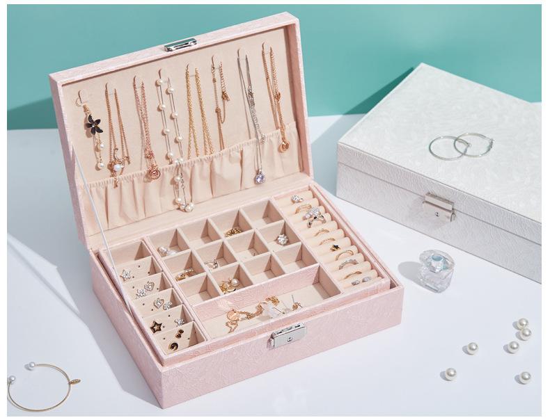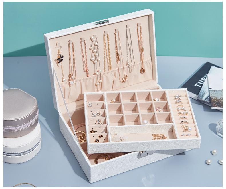 Nueva caja de almacenamiento de joyas de gran capacidad de doble capa, caja de joyería, caja de joyería para pendientes, anillos, collares, caja de joyería