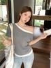 Camisola hueca de dos piezas falsas para niña 2023 Verano versátil irregular prenda exterior top corto ajustado 0056