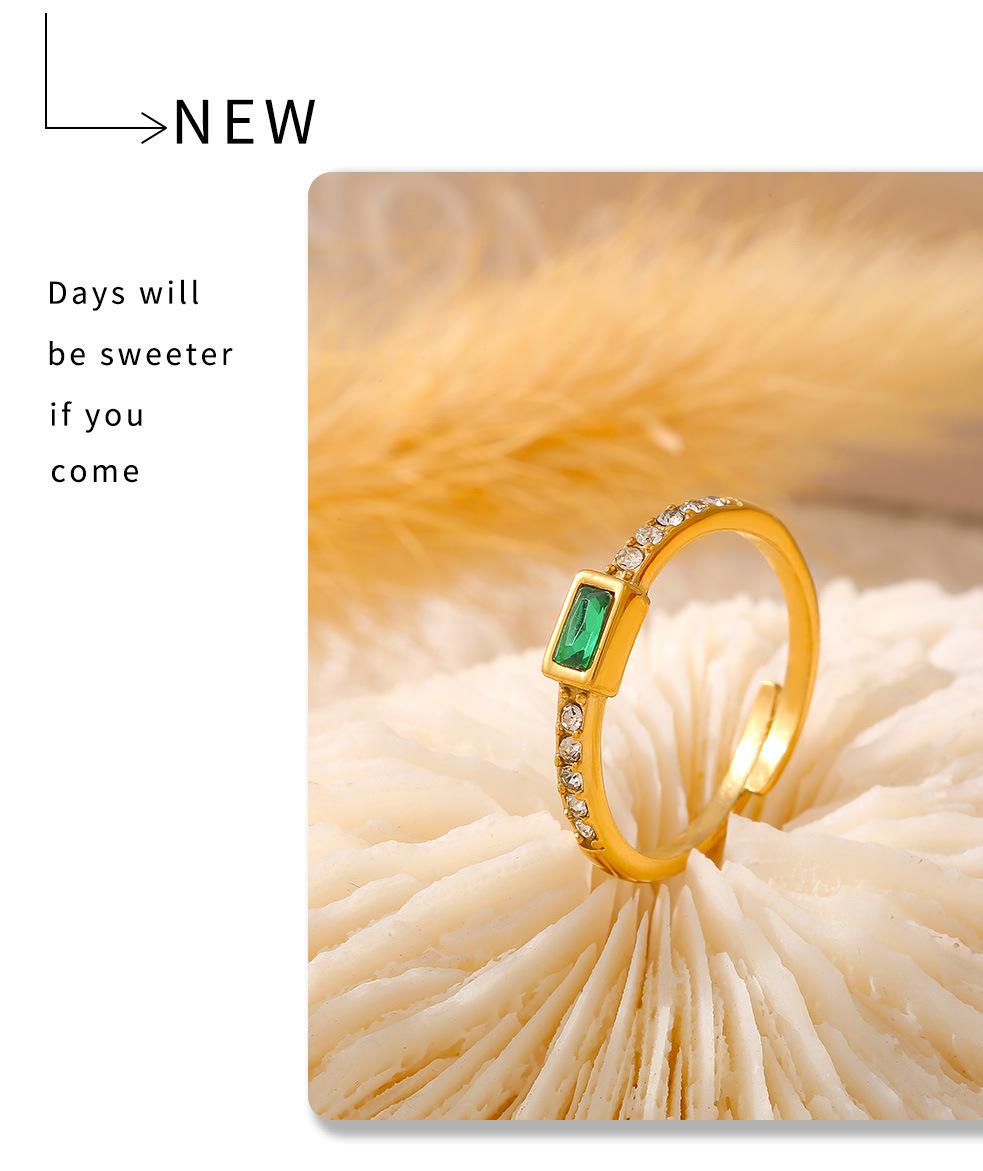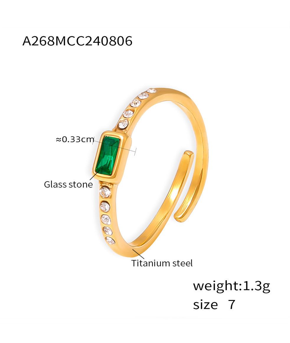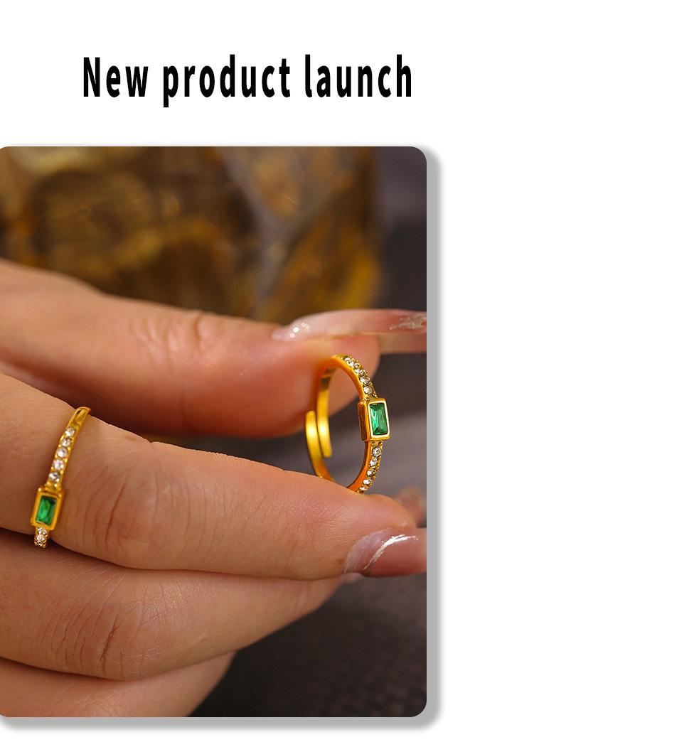 Compra Anillo de piedra de vidrio cuadrada transfronteriza 2024 nuevo, chapado en acero de titanio y oro real de 18 quilates, anillo de apertura con personalidad de moda para mujer, disponible en stock. al por mayor en Joom.pro