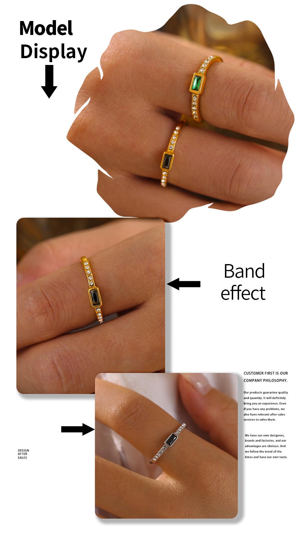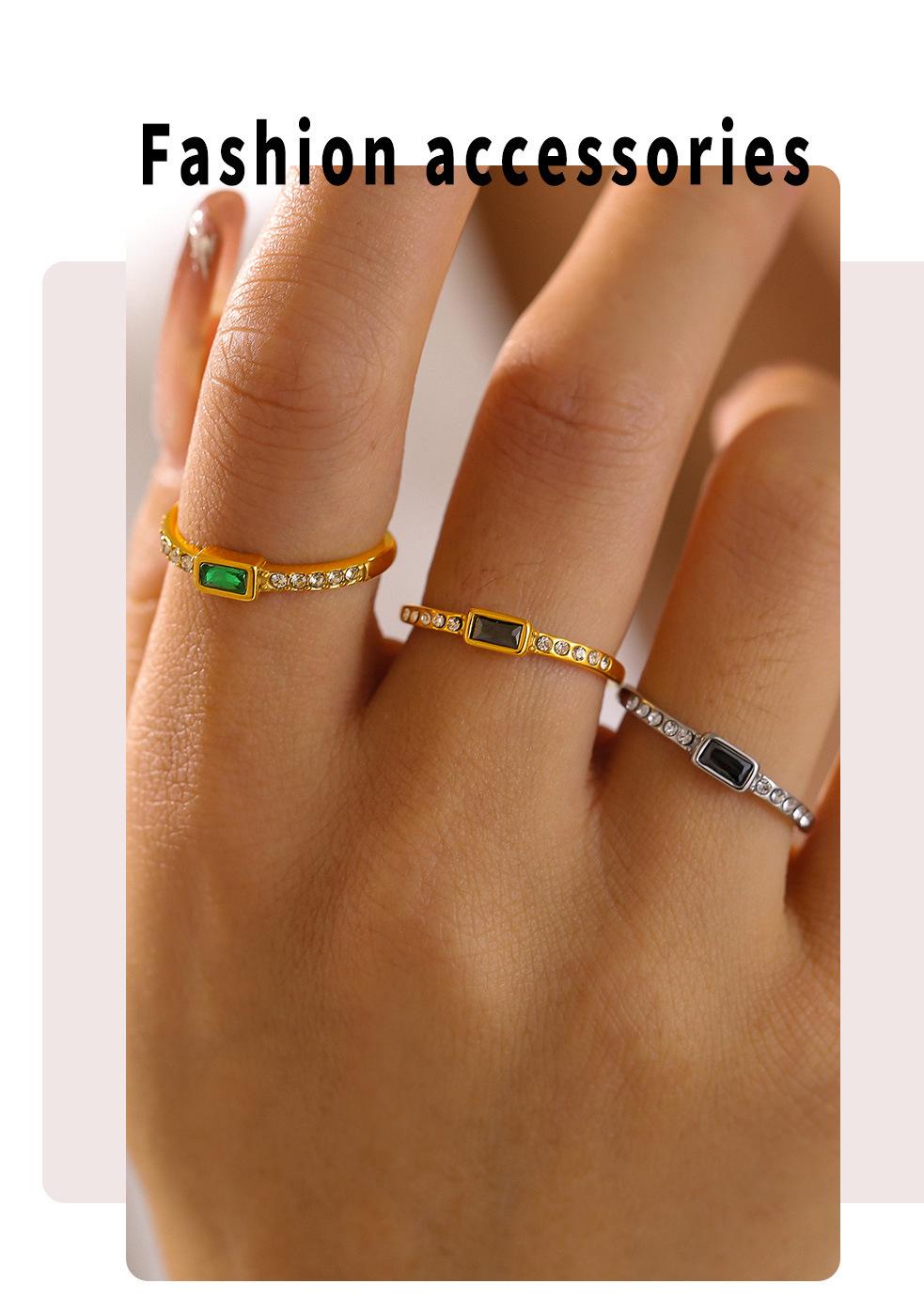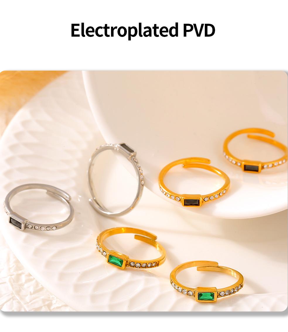 Compra Anillo de piedra de vidrio cuadrada transfronteriza 2024 nuevo, chapado en acero de titanio y oro real de 18 quilates, anillo de apertura con personalidad de moda para mujer, disponible en stock. al por mayor en Joom.pro