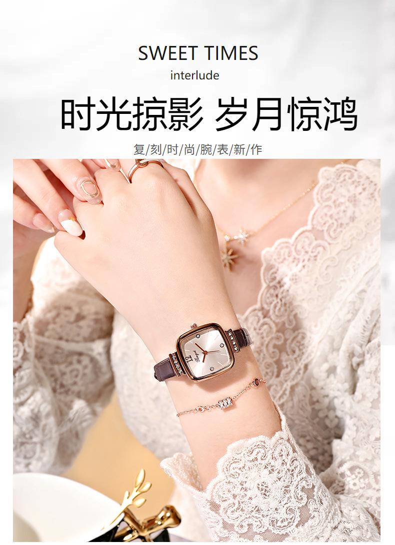TikTok Mano Rápida Reloj Cuadrado Pequeño ins Diseño Nicho Lujo Ligero Simple Elegante Verano Correa Cuadrado Pequeño Azúcar Reloj de Mujer
