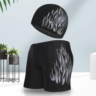 | Bañador para hombre, calzoncillos bóxer de talla grande, bañador de moda para hombre con diseño de llamas termales, gorro de baño, equipo de natación profesional |