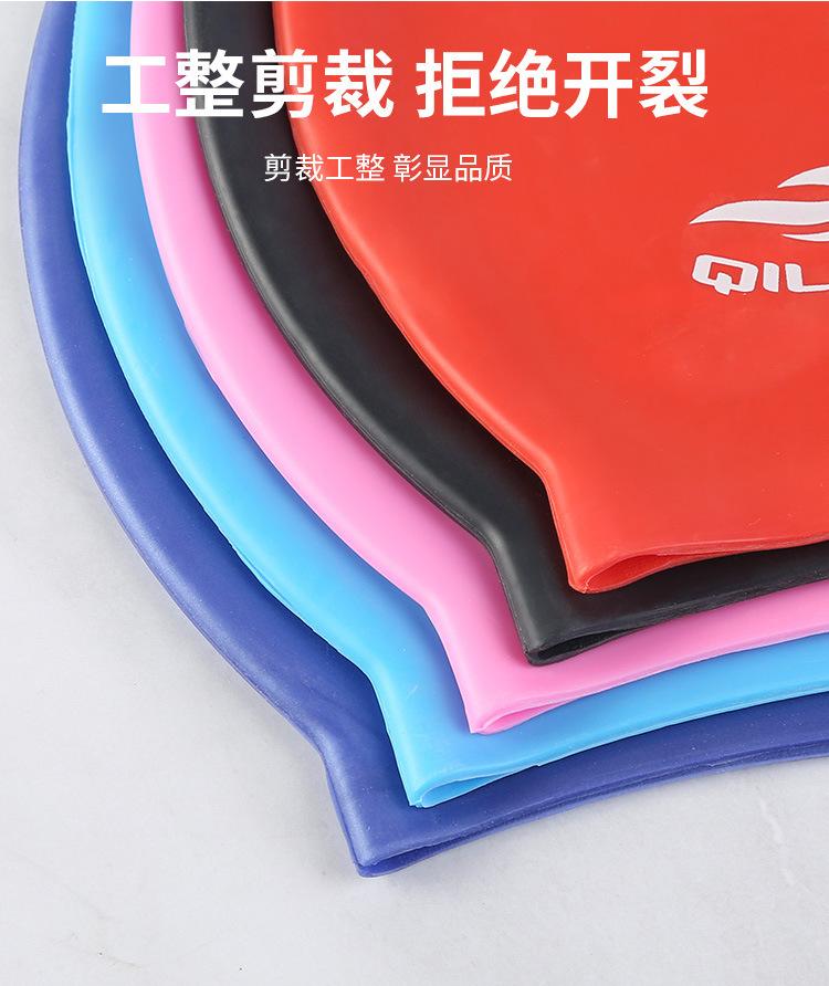| Gorro de natación de silicona Qilang, venta al por mayor, grueso, 55 g, para adultos, niños, hombres y mujeres, impermeable, color sólido, logotipo personalizado, gorro de natación |