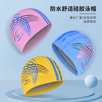 | Gorro de natación de silicona con diseño al por mayor, logotipo de protección auditiva, alta elasticidad, para niños y adultos, protección auditiva universal, gorro de natación impermeable, personalizado |