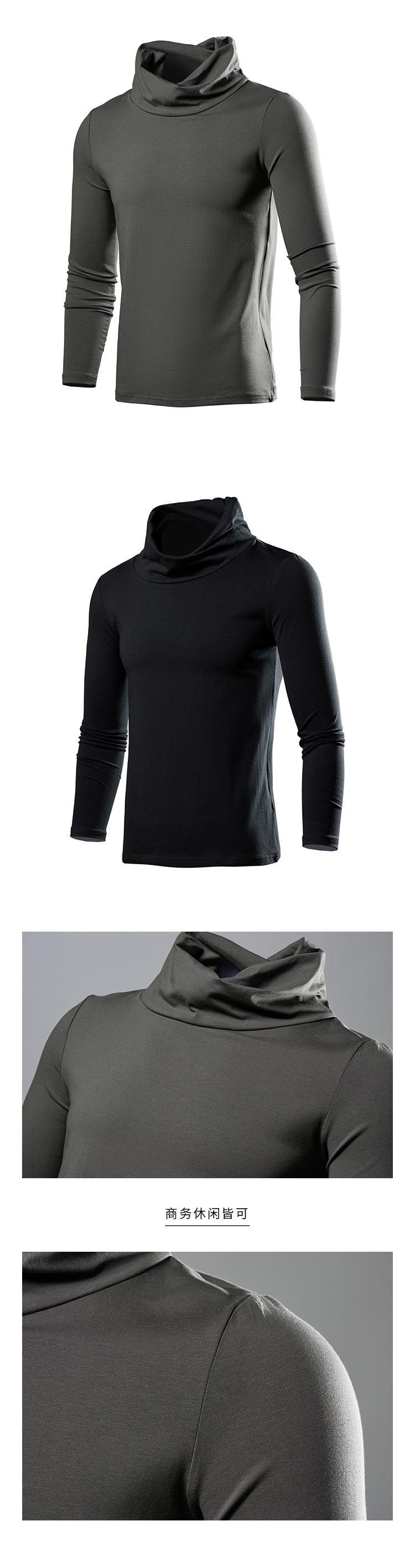 Camiseta de manga larga de color liso con cuello de pila para hombre, ropa interior deportiva, camiseta térmica, camisa de manga larga para hombre, otoño e invierno