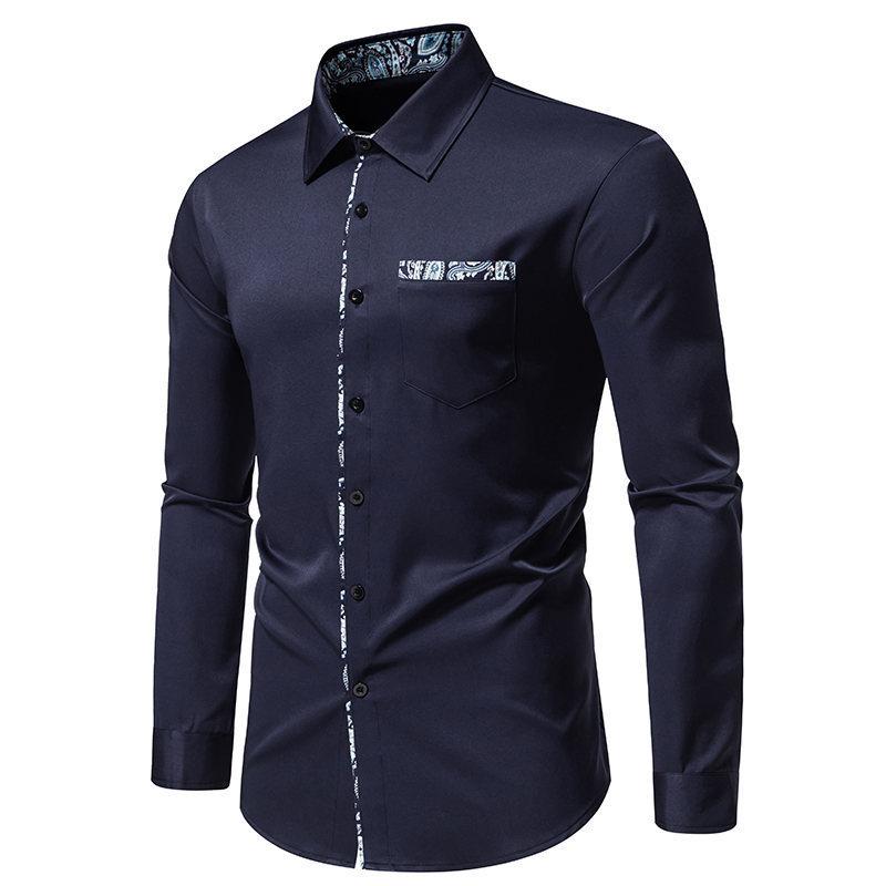 Transfronterizo 2024 primavera Amazon nuevo talla europea moda hombre cuello triángulo combinación de colores flor de anacardo camisa manga larga hombre