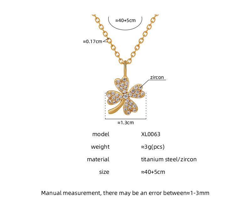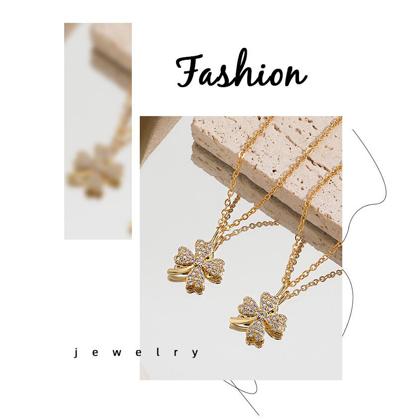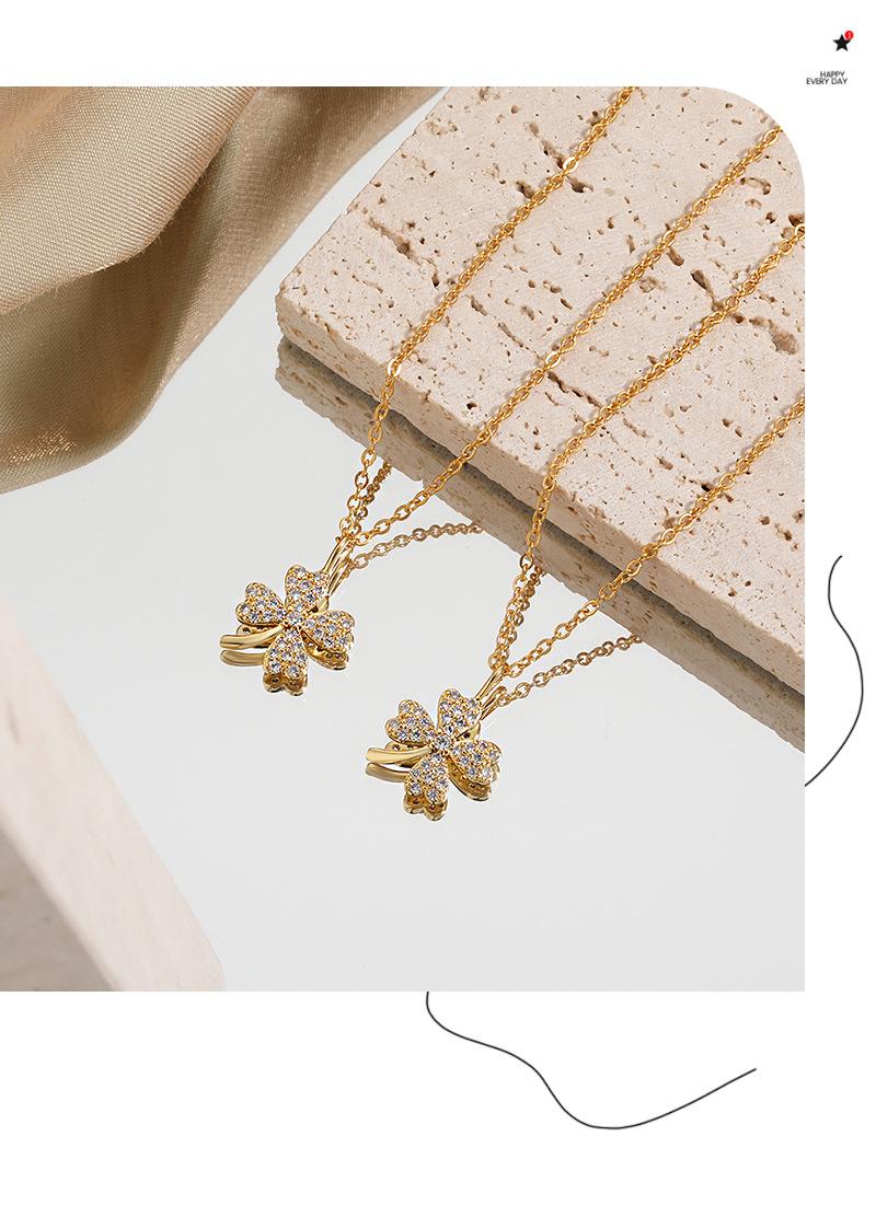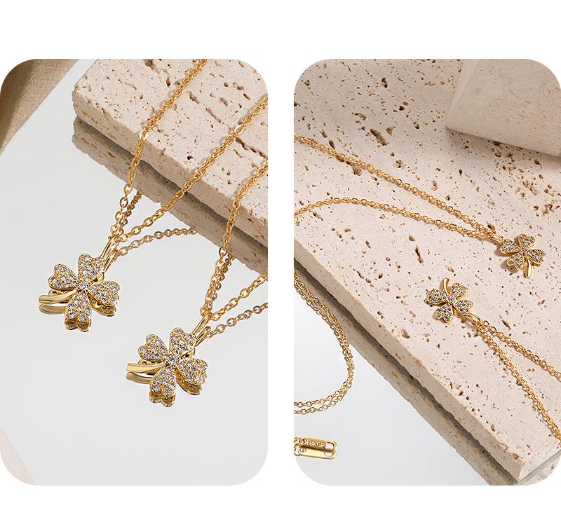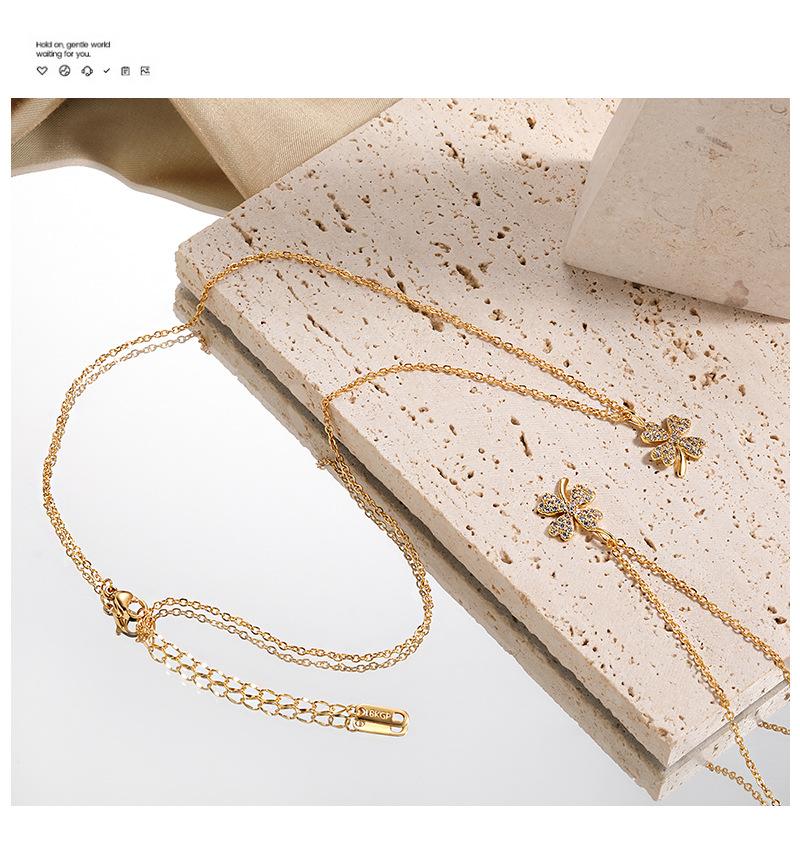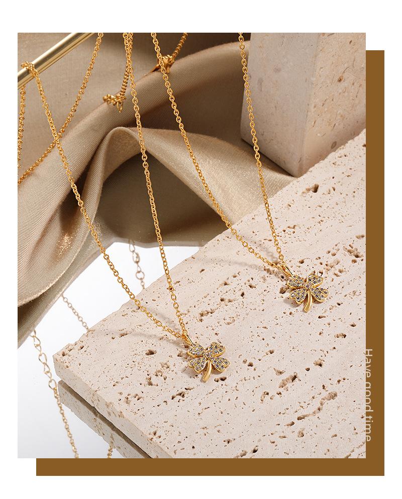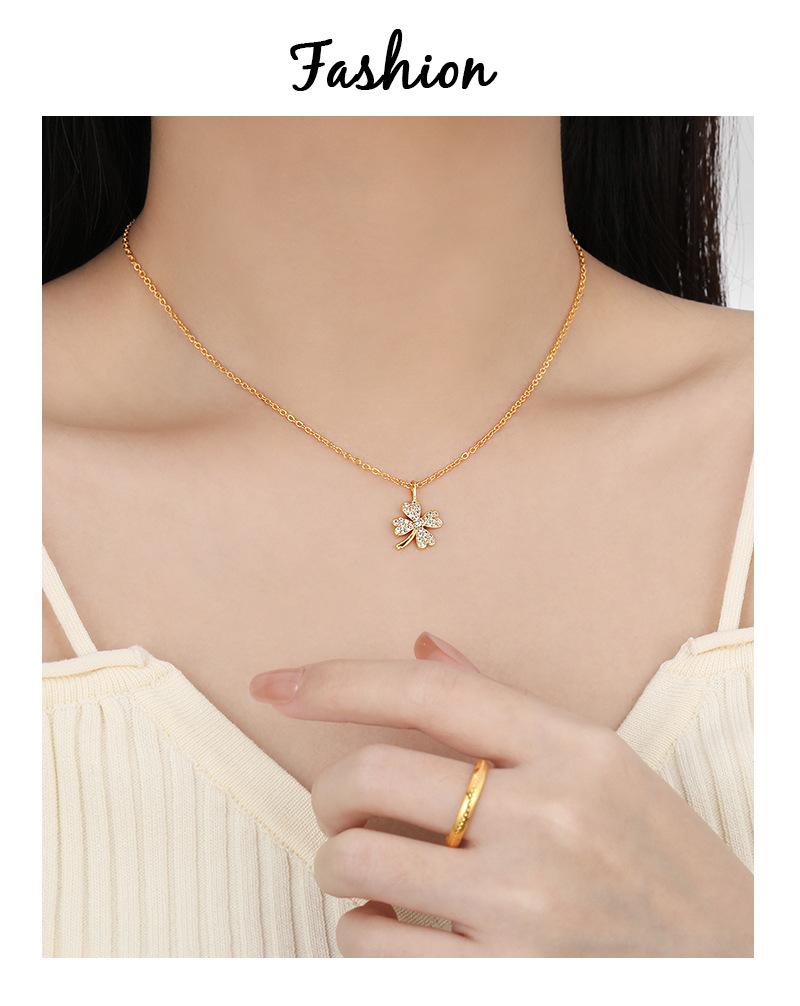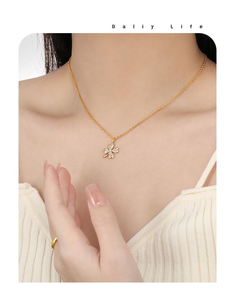 Collar de trébol de diamantes con microincrustaciones, estilo coreano, fresco, dulce y ligero, de lujo, con personalidad de moda para mujer, cadena de clavícula de acero de titanio chapada en oro