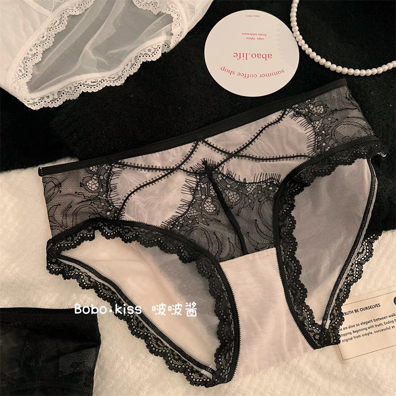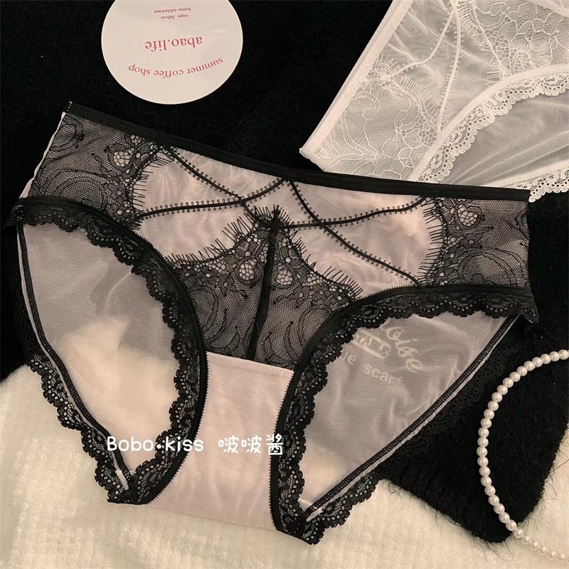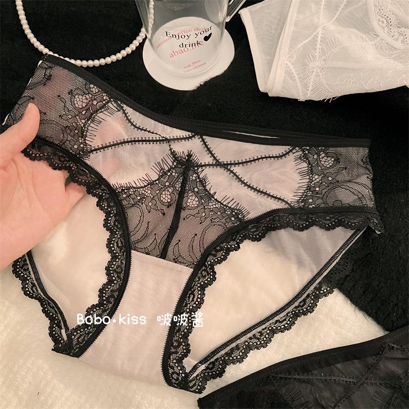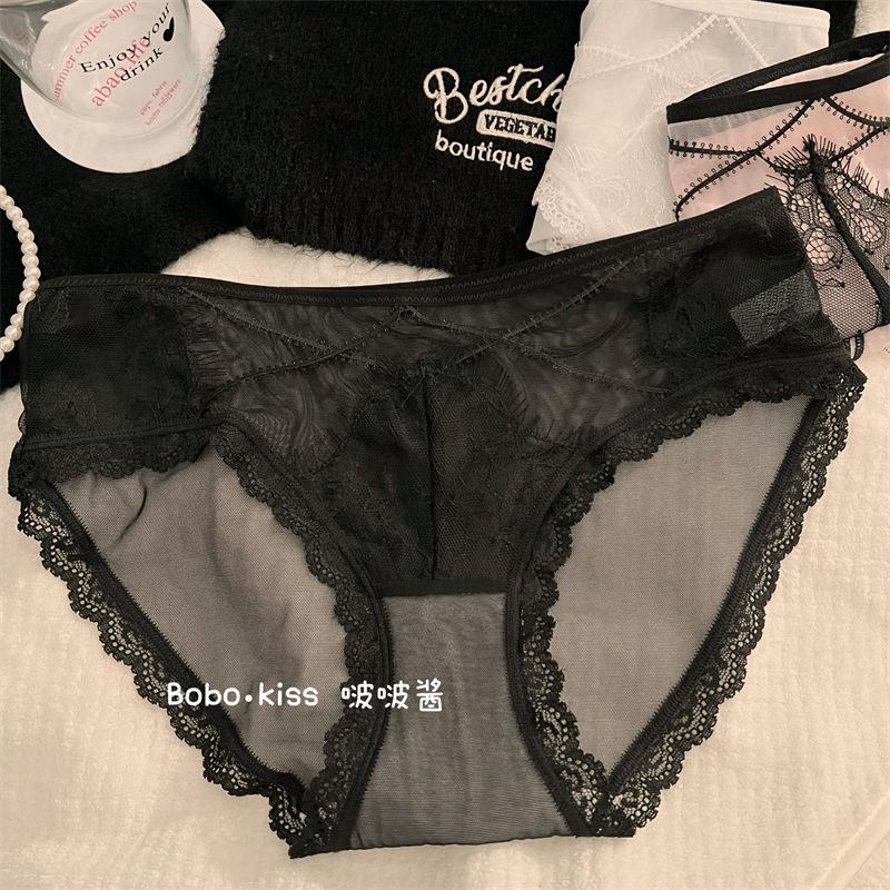 Ropa interior de encaje calado estilo francés Pure Desire para mujer, malla sexy sin marcas, cintura baja, entrepierna triangular