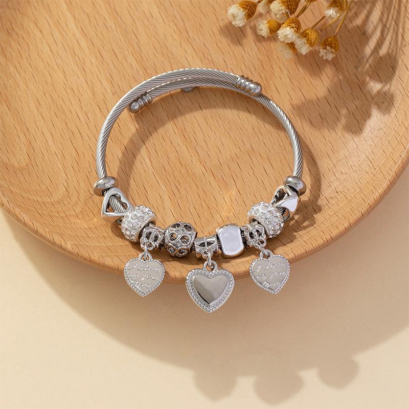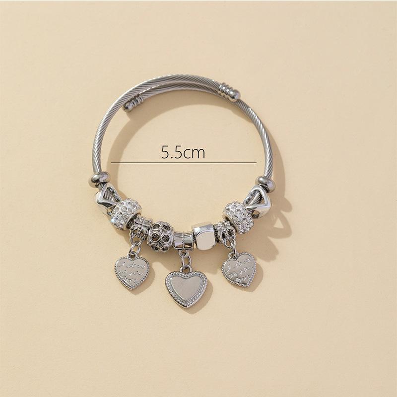 Pulsera Panjia Dora DIY con cuentas transfronterizas, anillo de acero inoxidable, bola de diamante, aleación, corazón, letra, accesorios, pulsera