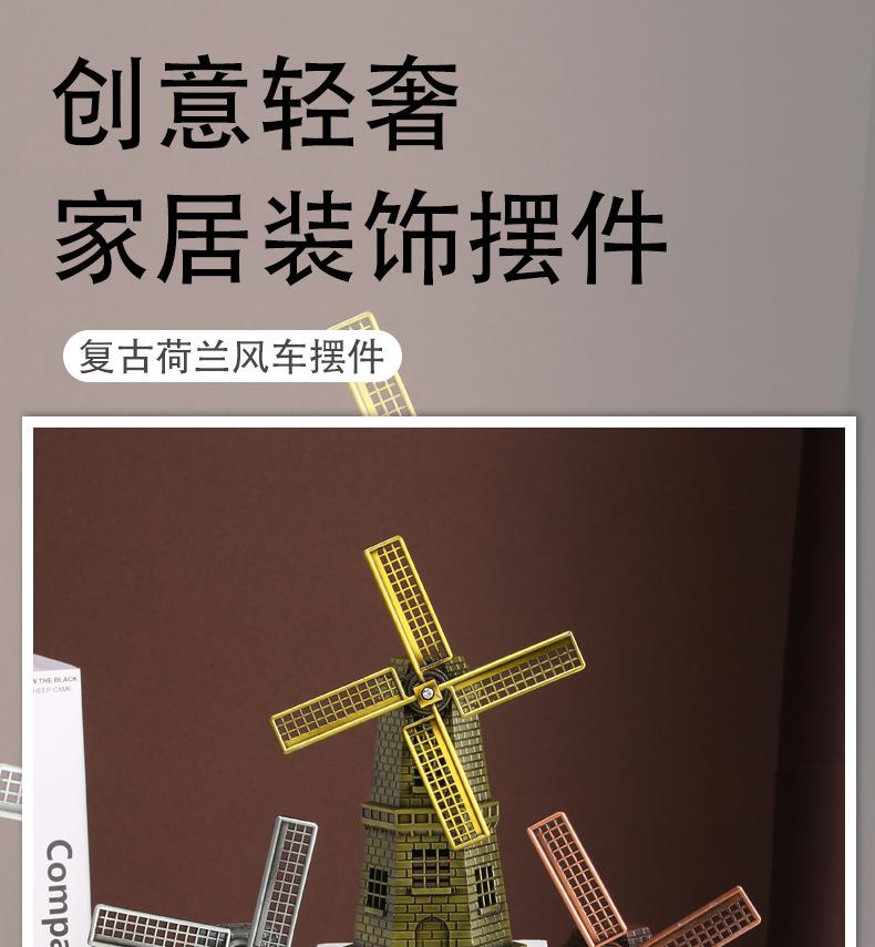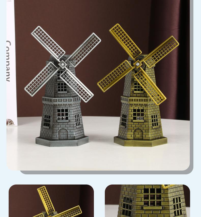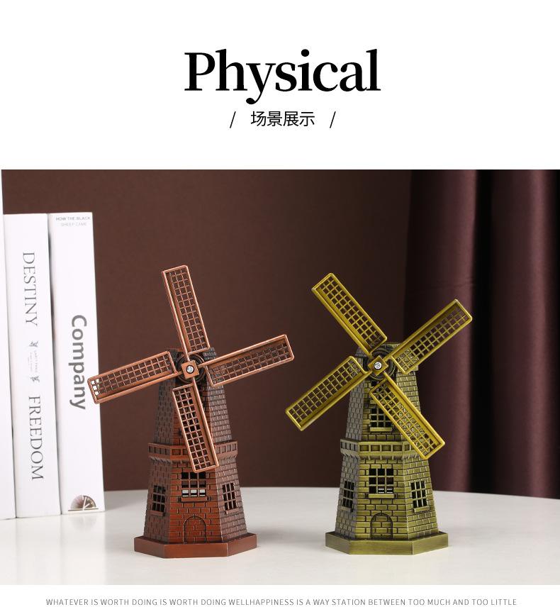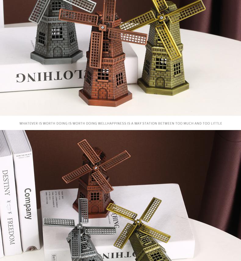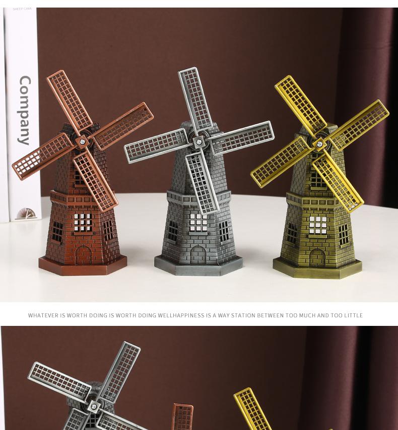 Adornos de Molino de Viento Holandés de Metal Vintage, Decoraciones para Librería, Vinoteca, Creativo para Sala de Estar, Estilo Europeo, Adornos de Escritorio de Molino de Viento