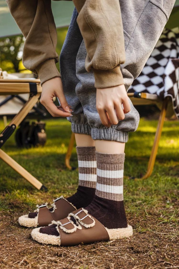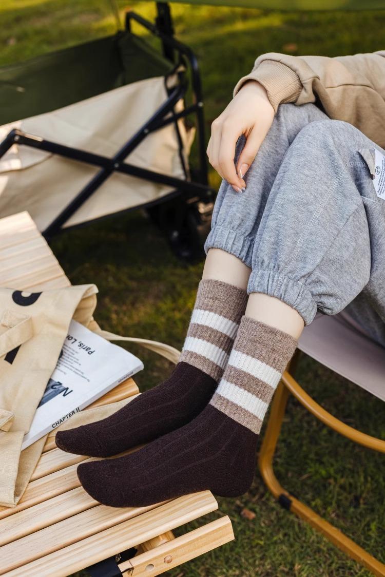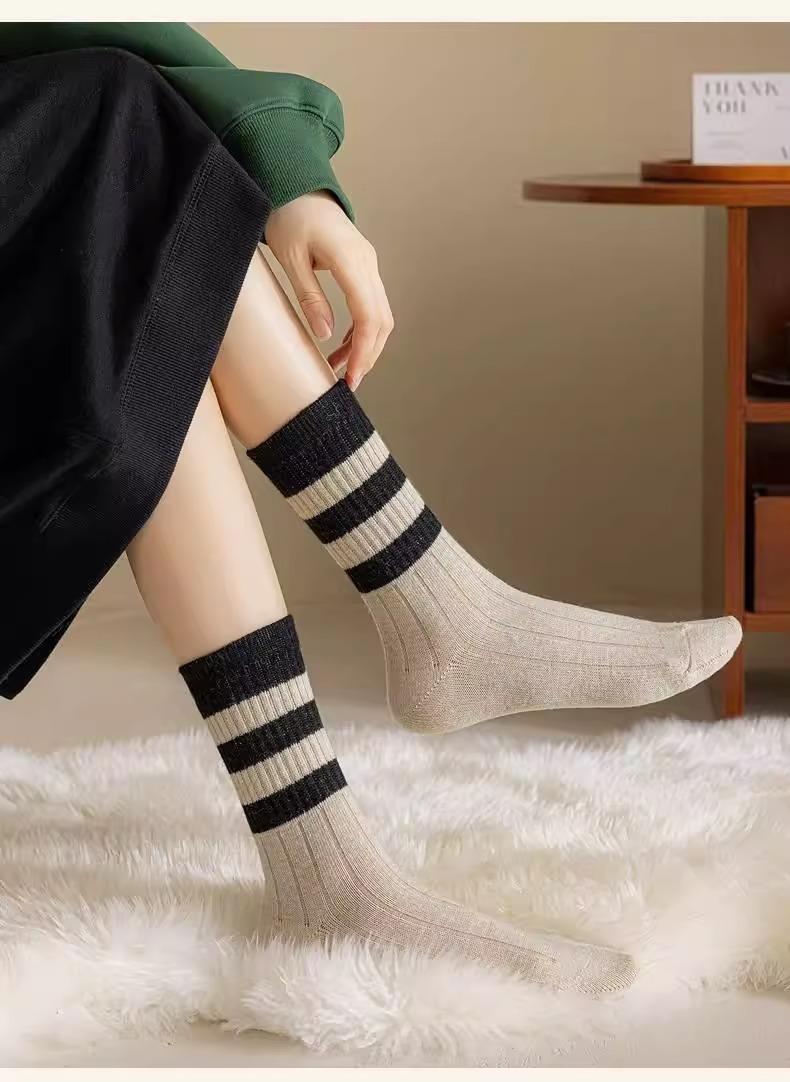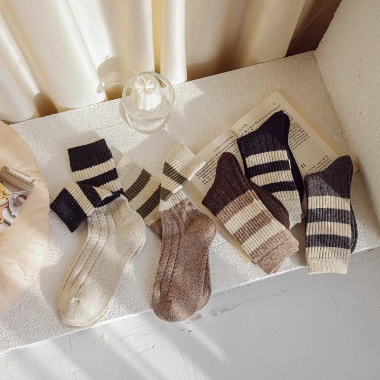 Calcetines de mujer hasta media pantorrilla de primavera y otoño con pantalones de tiburón a rayas versátiles gruesos cálidos ins calcetines de moda hasta media pantorrilla simples