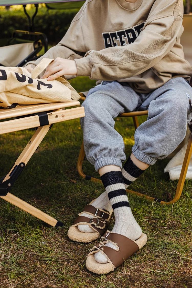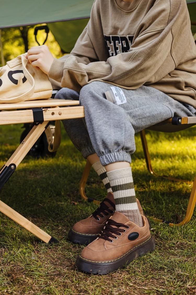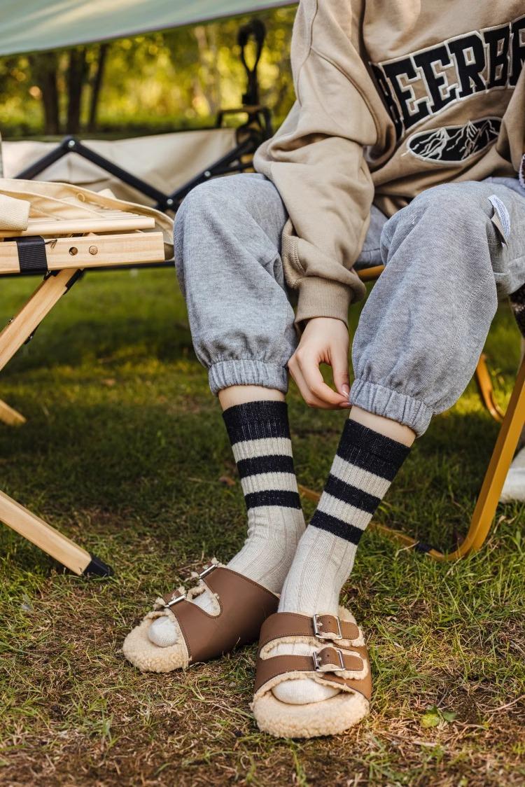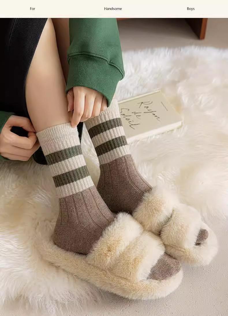 Calcetines de mujer hasta media pantorrilla de primavera y otoño con pantalones de tiburón a rayas versátiles gruesos cálidos ins calcetines de moda hasta media pantorrilla simples