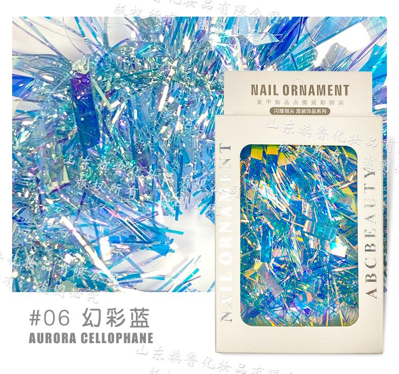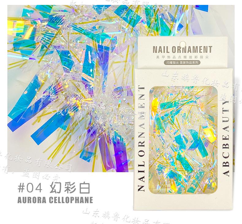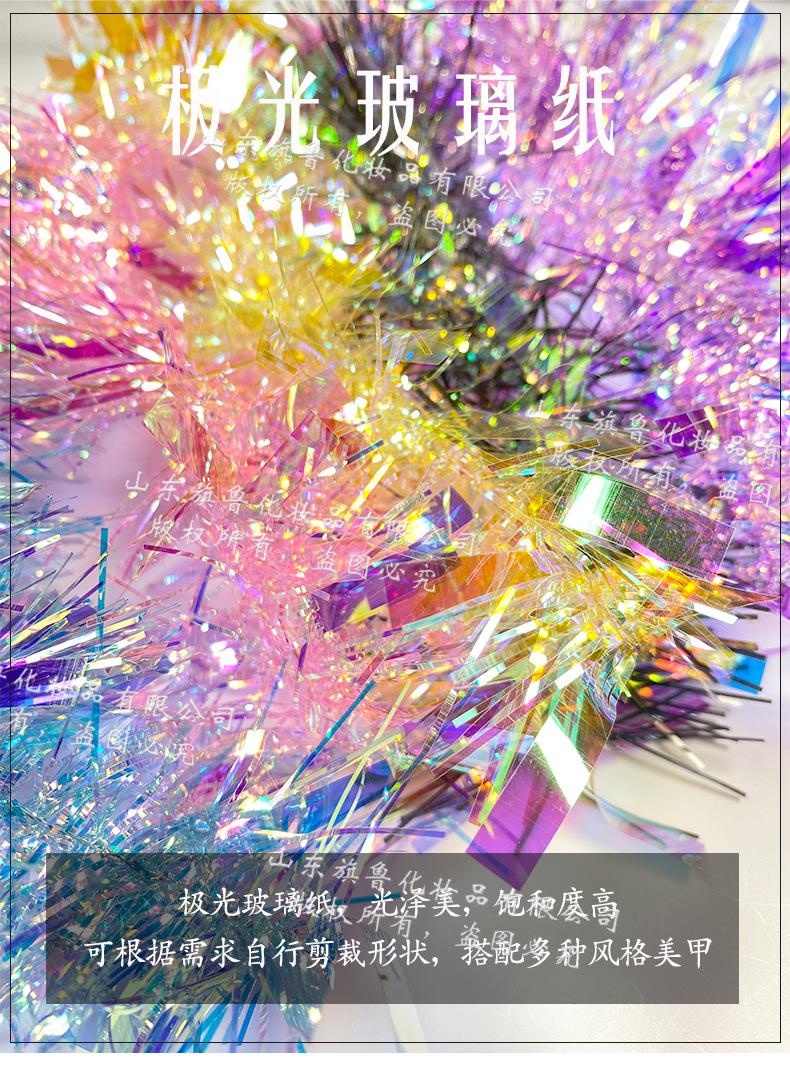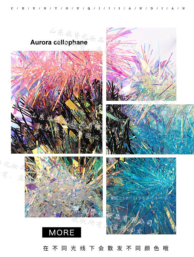 Arte de uñas Aurora celofán láser colorido tira larga espejo de color mágico lentejuelas irregulares papel láser decoraciones de uñas