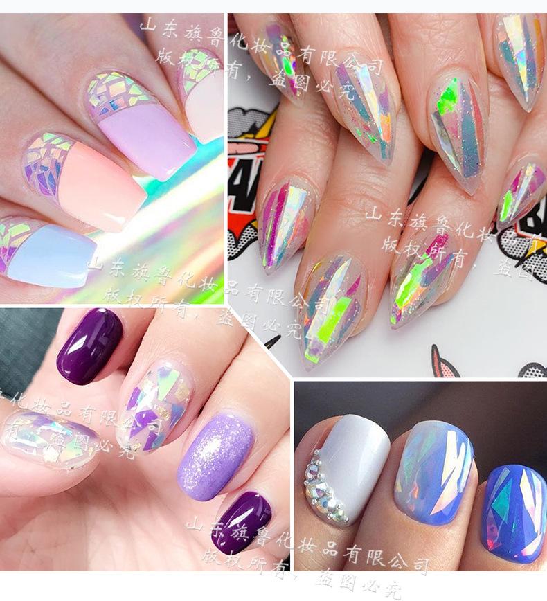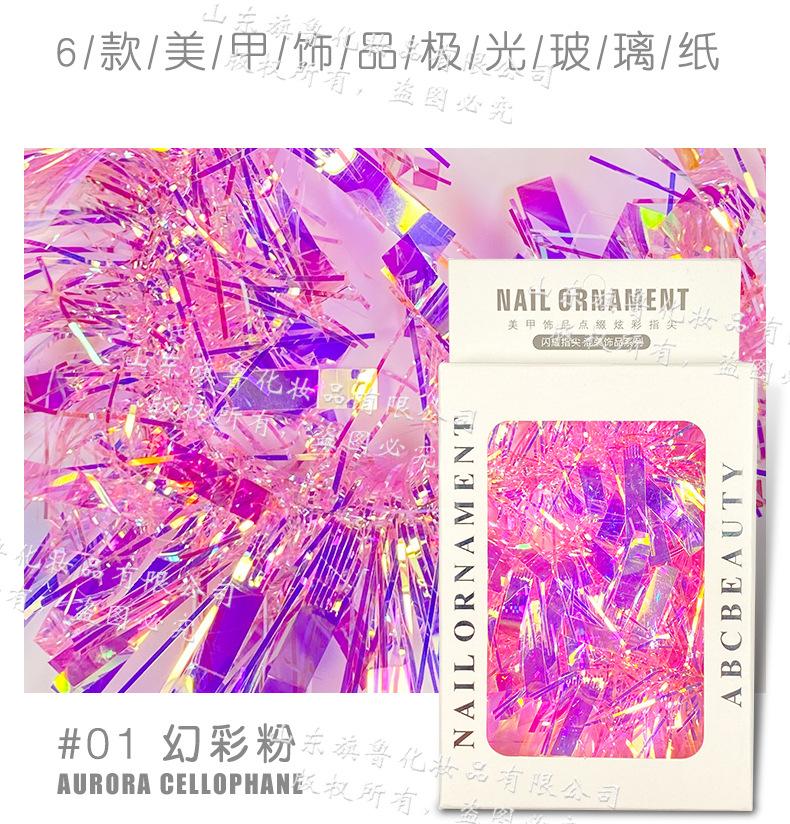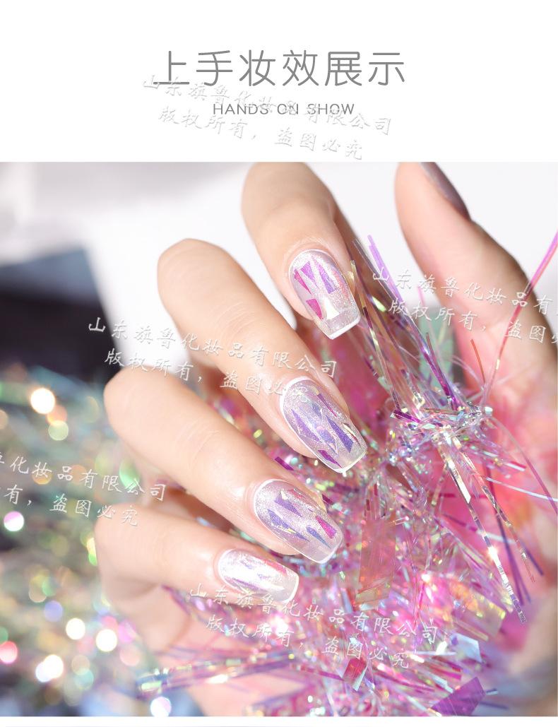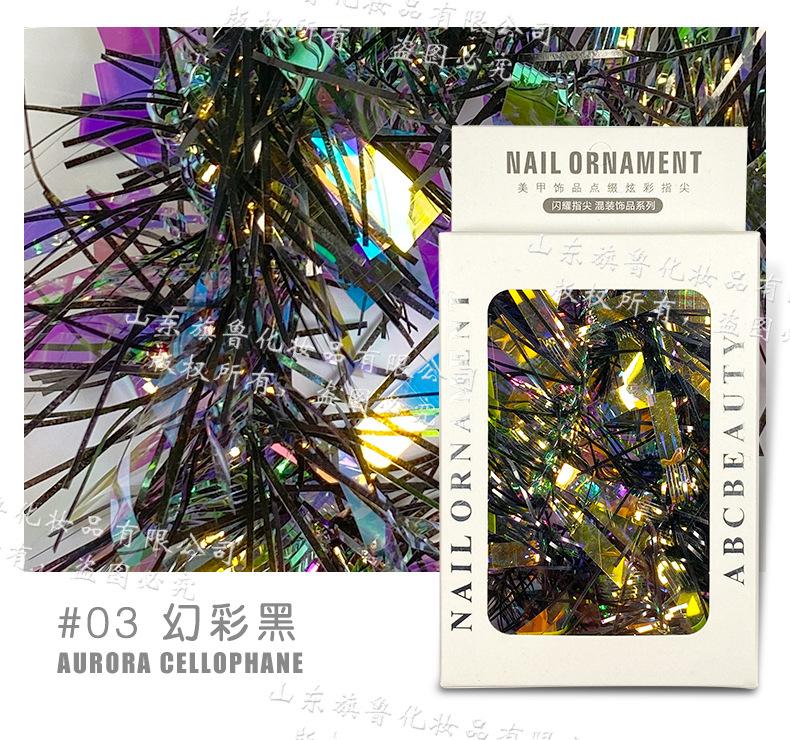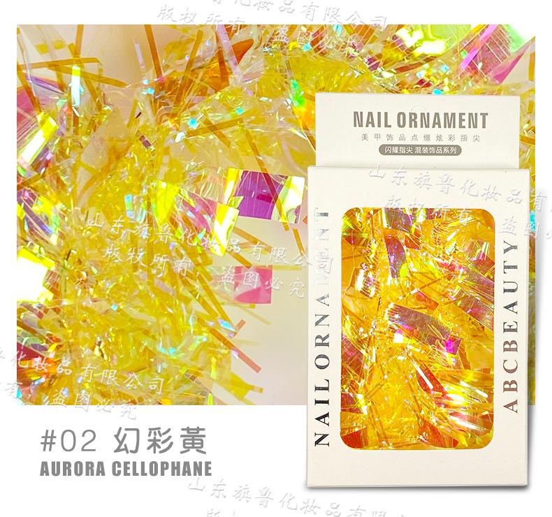 Arte de uñas Aurora celofán láser colorido tira larga espejo de color mágico lentejuelas irregulares papel láser decoraciones de uñas