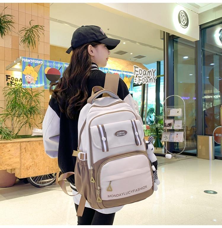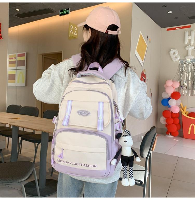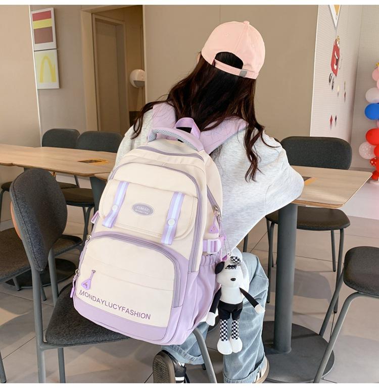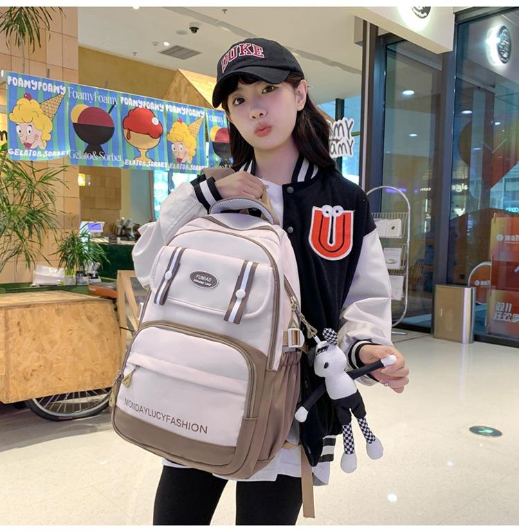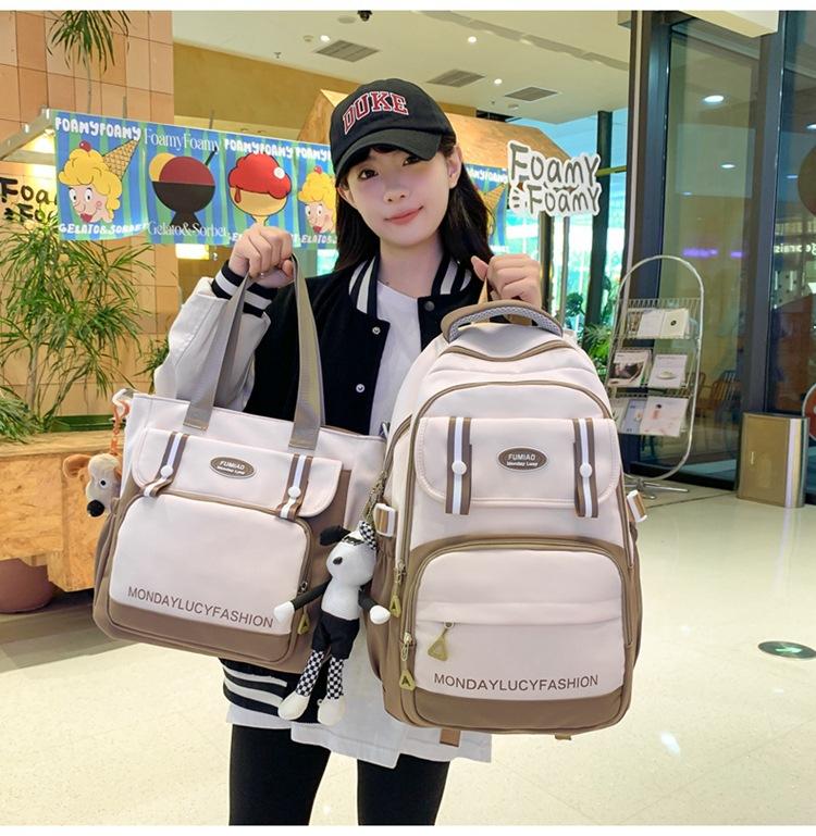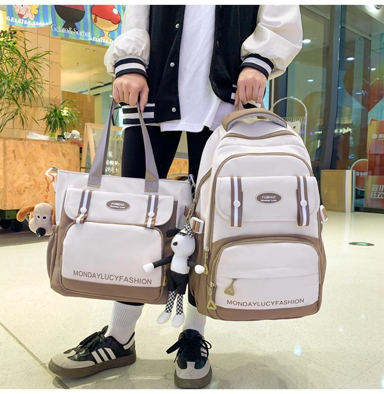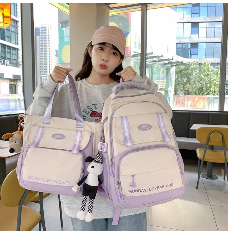 Nueva mochila escolar para estudiantes de secundaria, de gran capacidad, con colores en contraste, para estudiantes de 3.º a 6.º grado de primaria, de dos piezas, para clase de maquillaje