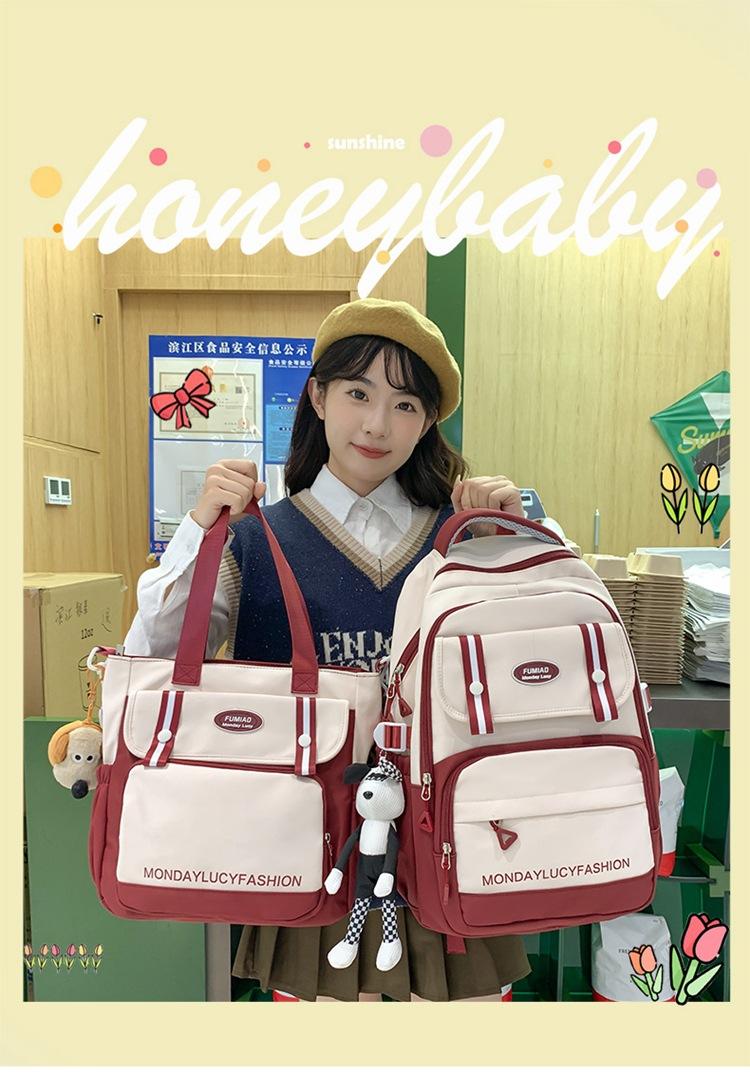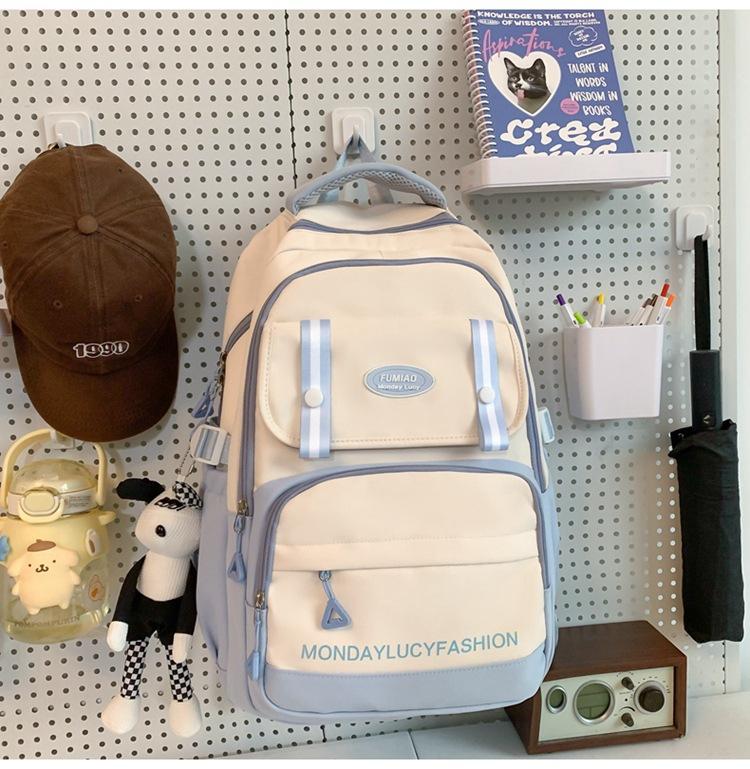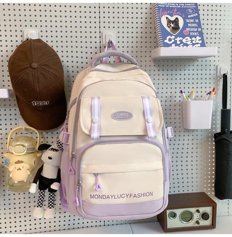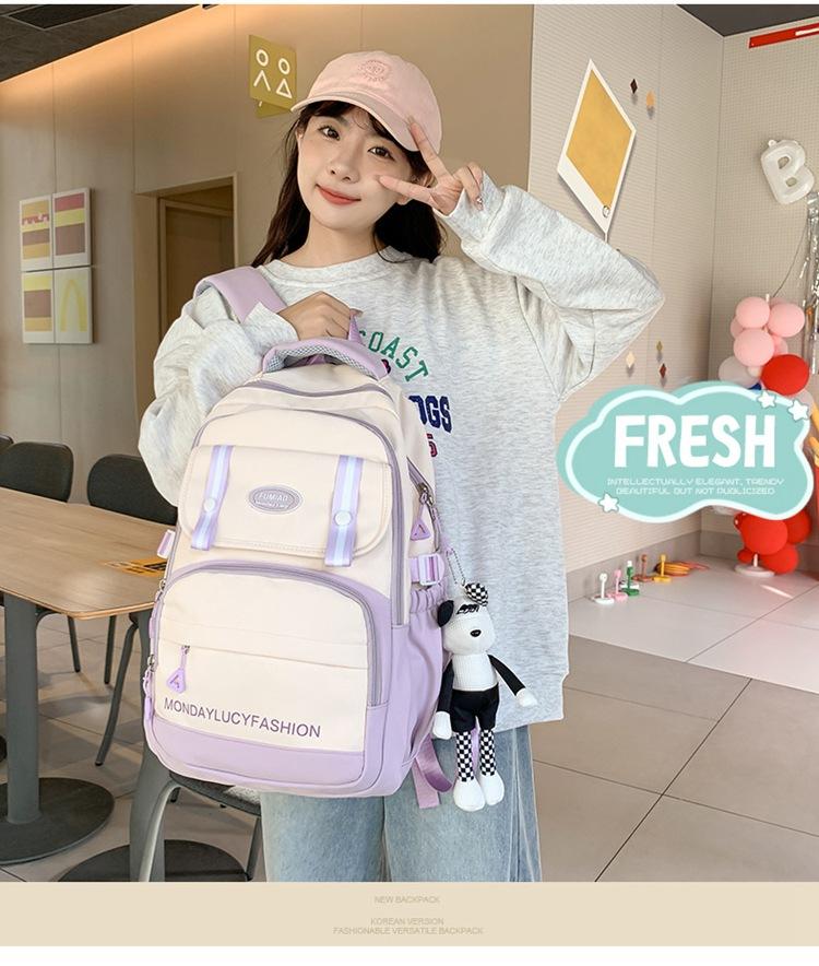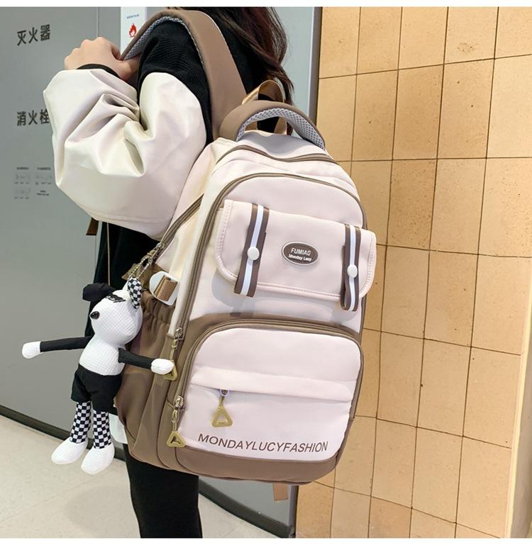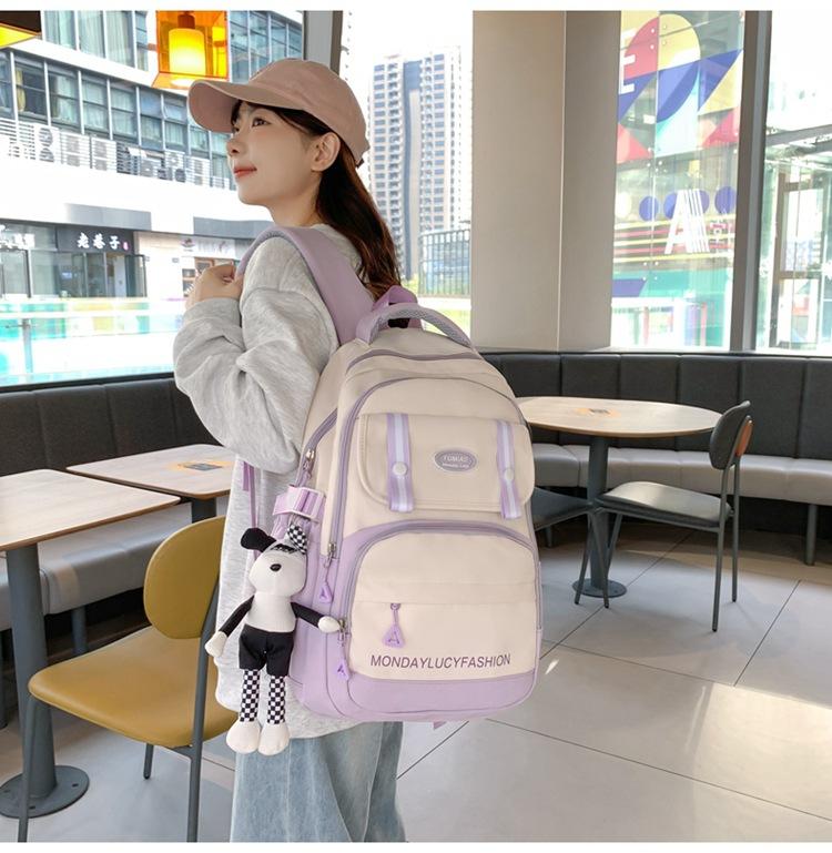 Nueva mochila escolar para estudiantes de secundaria, de gran capacidad, con colores en contraste, para estudiantes de 3.º a 6.º grado de primaria, de dos piezas, para clase de maquillaje