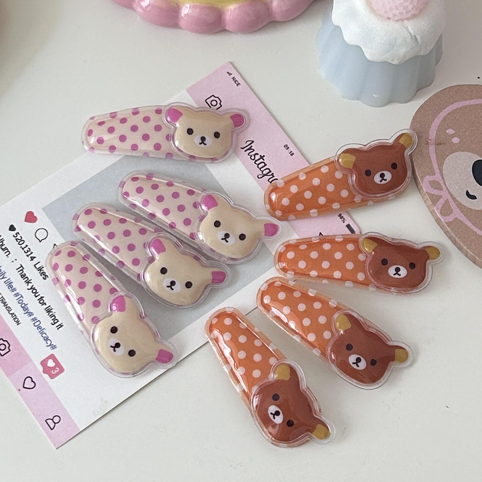 Lindo Ligero Oso Lunares Oso Pinza BB Horquilla Lateral para Cabello de Chica Suave Dibujos Animados Dulce Clip para Flequillo Accesorios para el Cabello