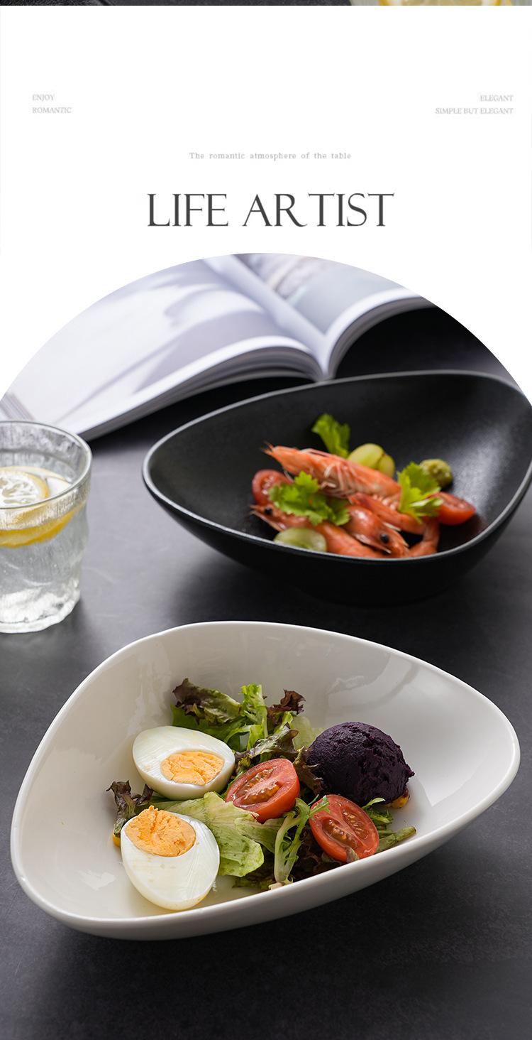 Cuenco de cerámica triangular creativo, cuenco para ensalada de frutas, plato de cena esmerilado para el hogar, vajilla de estilo japonés, plato estilo Ins, cuenco.
