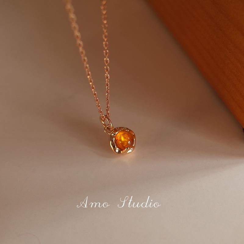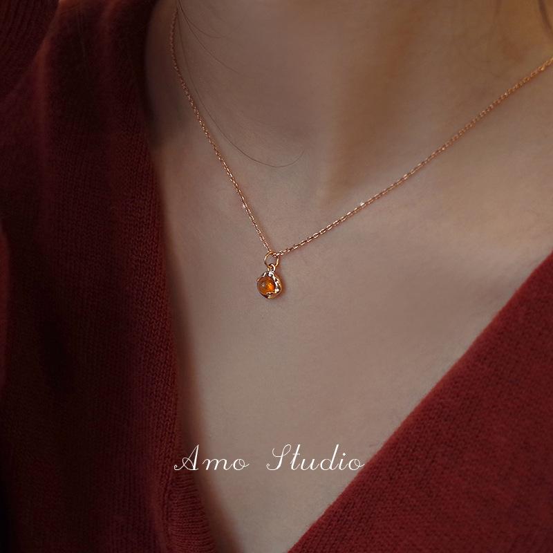 Collar de ámbar con fragmentos de tiempo para mujer, de plata de ley, con nicho ligero, de lujo, estilo retro, primavera y verano 2024.