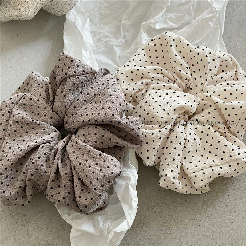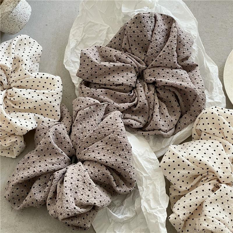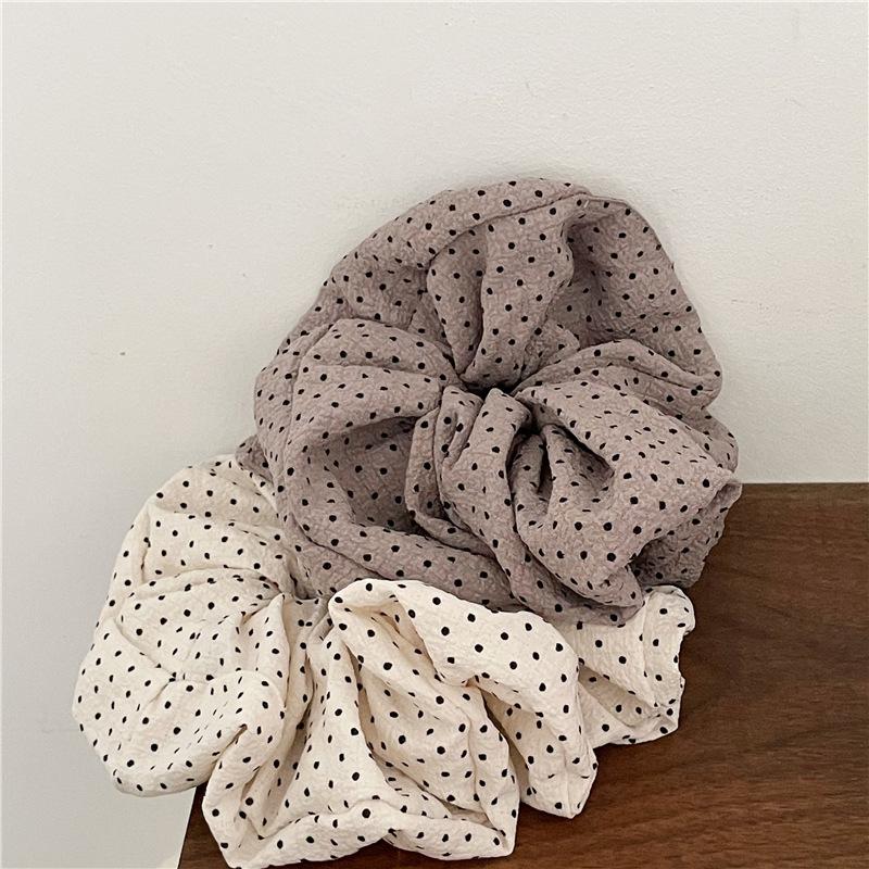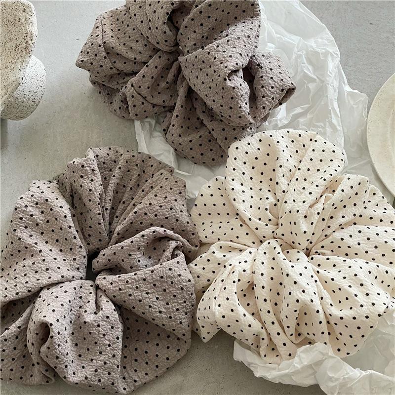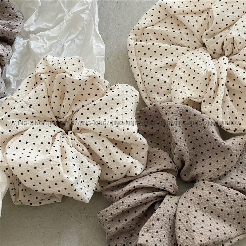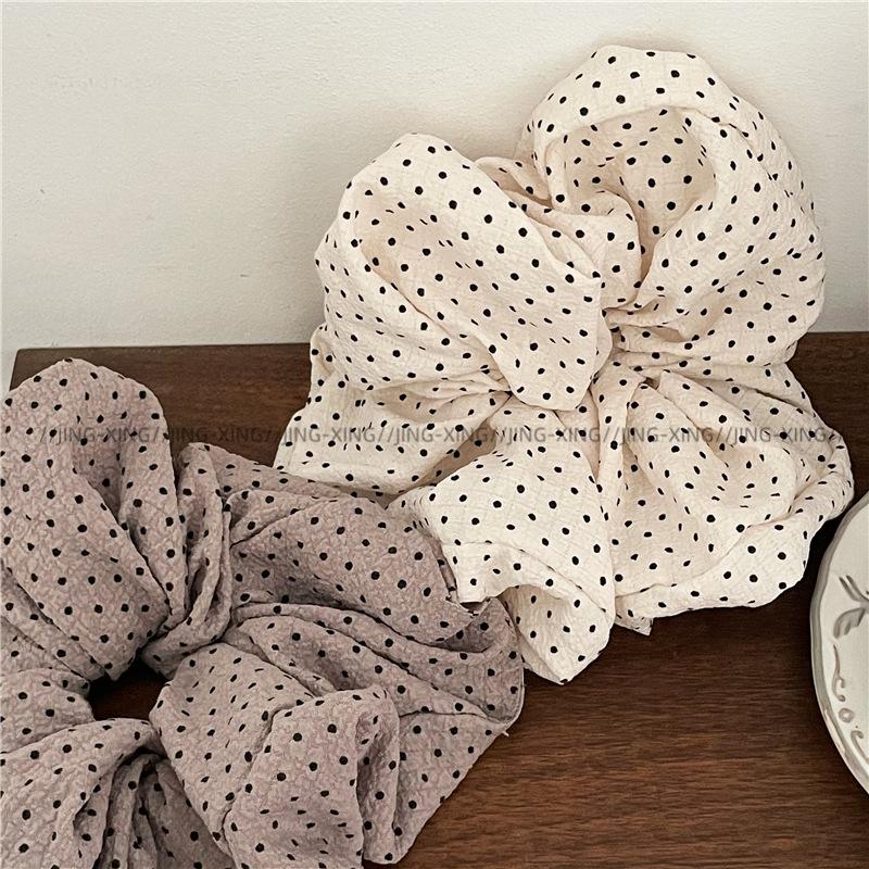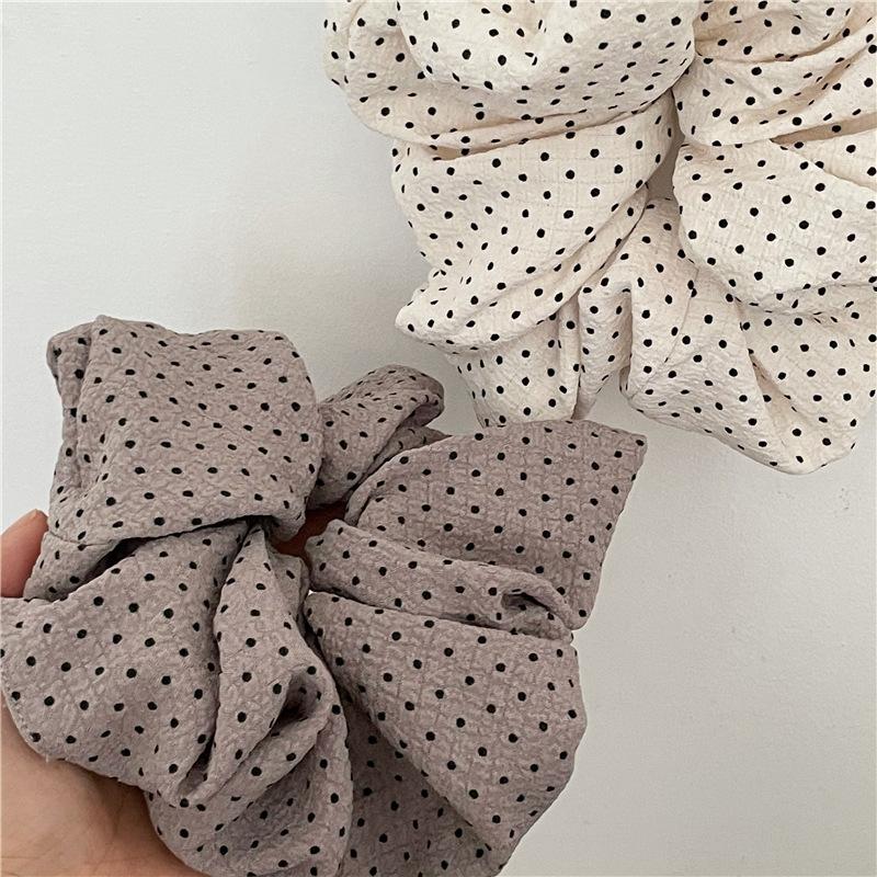 Punto de venta del producto: Nuevos accesorios para el cabello estilo coreano, tela plisada con textura de lunares negros