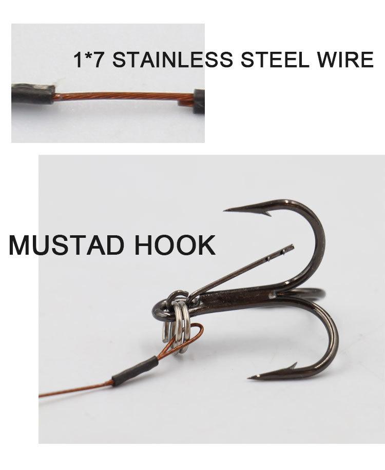 Bajo de línea de acero: 9cm 15kg peso de la cabeza: 10g, anzuelo Mustad: 2# (Alambre: 9cm Tensión 15kg Plomo: 10g Anzuelo Mustad: 2#)