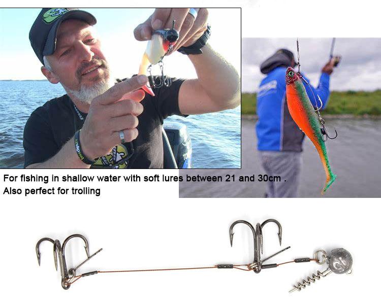 Líder de alambre: 14cm 15kg peso de la cabeza: 15g, anzuelo Mustad: 2#(Línea: 14cm Tensión 15kg Plomo: 15g Anzuelo Mostaza: 2#)