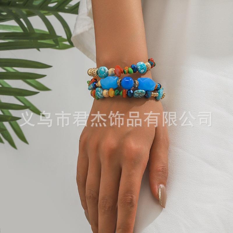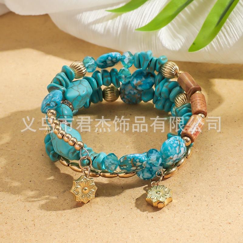 Compra Pulsera Multicapa de Estilo Bohemio Retro Transfronteriza con Cuentas de Piedra Natural Imitación, Color Distintivo, Pulsera Elástica, Pulsera de Moda al por mayor en Joom.pro
